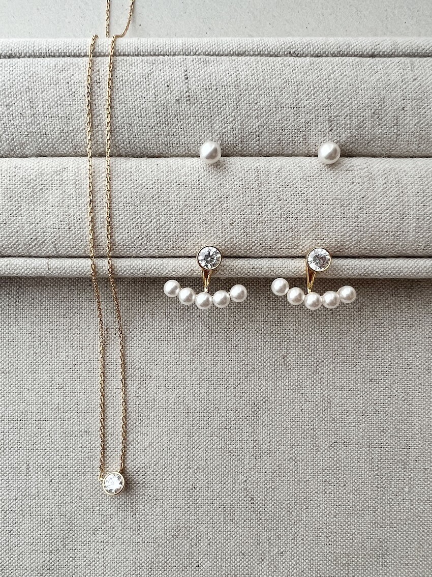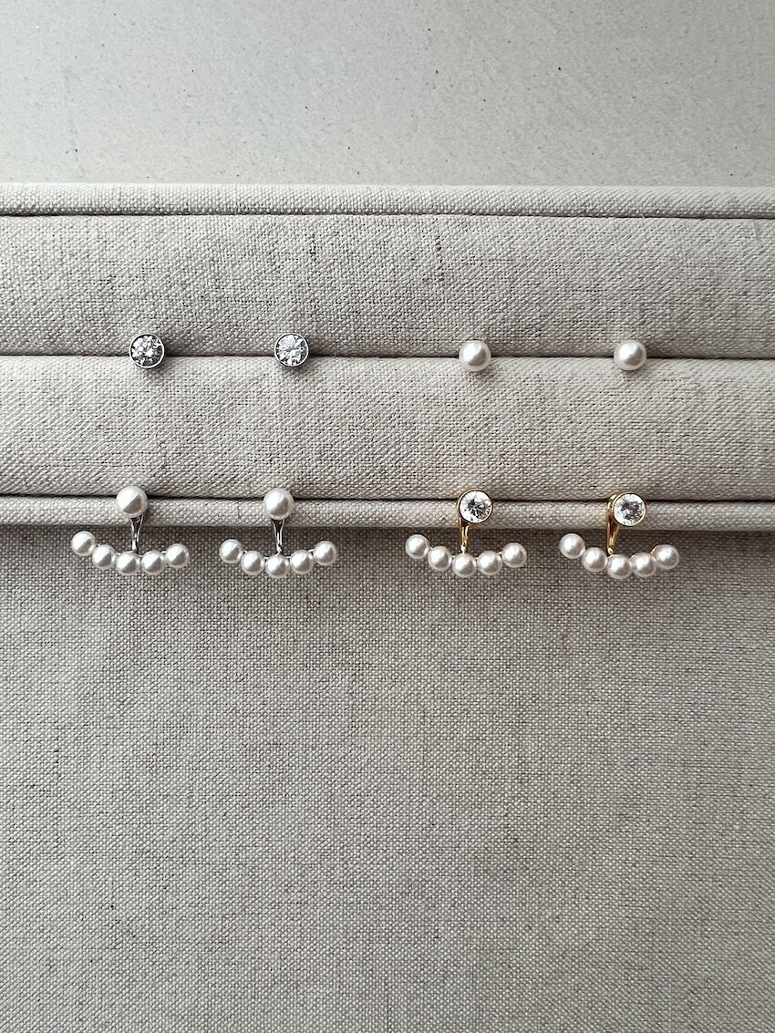 진주 포스트 심플이어링, 그리고 반짝이는 크리스탈 이어링을 기본으로하고