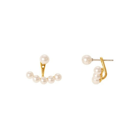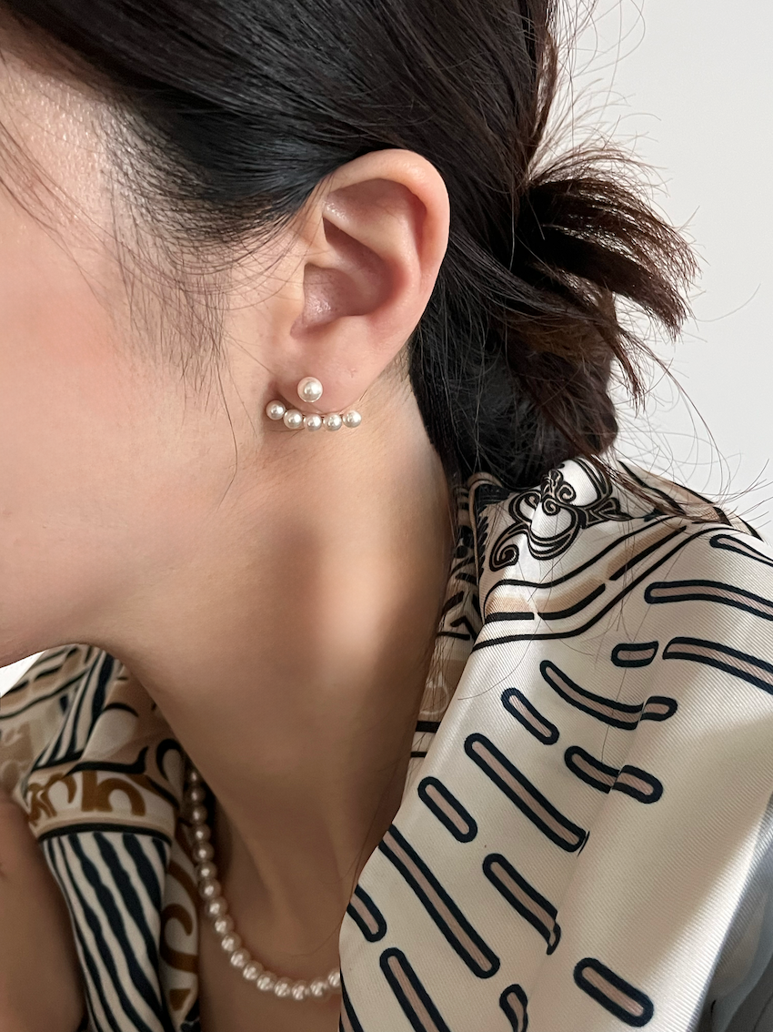 여러 사이즈의 진주들이 귀 전체에 뿌려지듯 위치하면서 아주 멋진 스타일을 연출합니다.