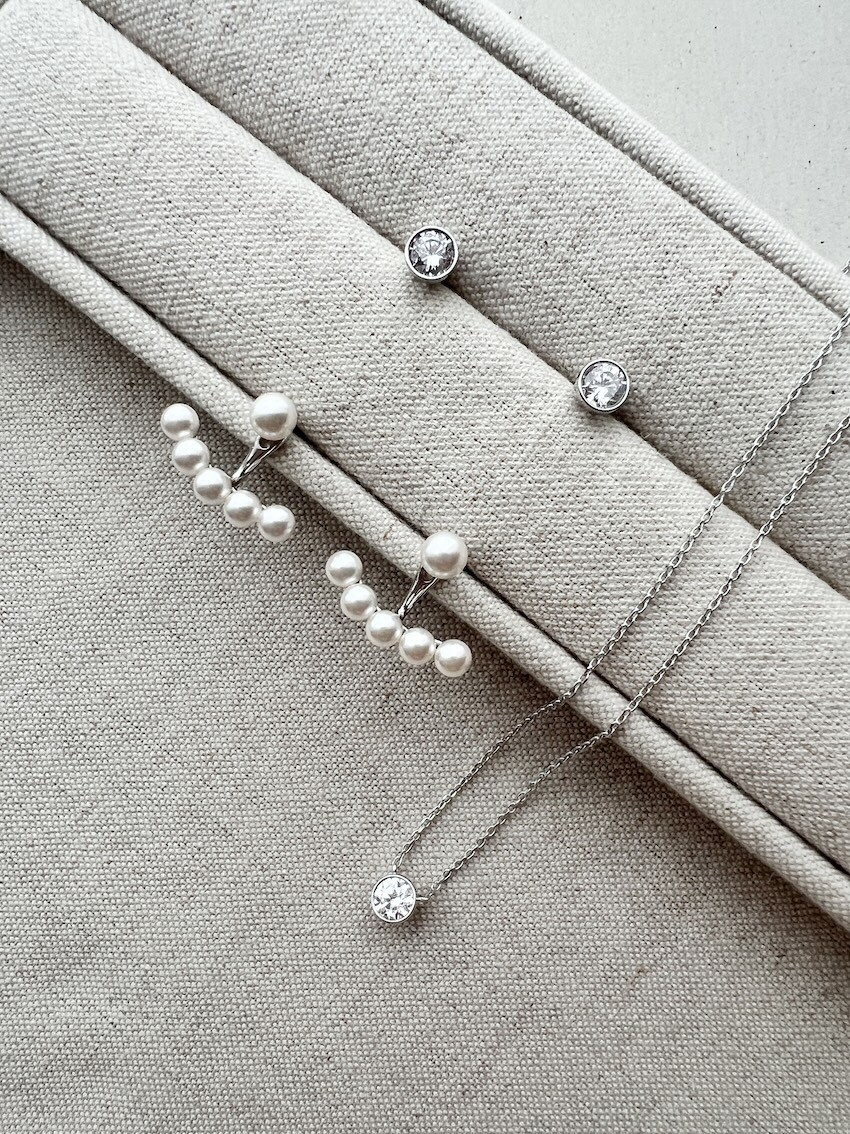 이에 함께하거나 또는 따로 할 수 있는 진주 이어자켓을 함께 세트로 구성했습니다.
