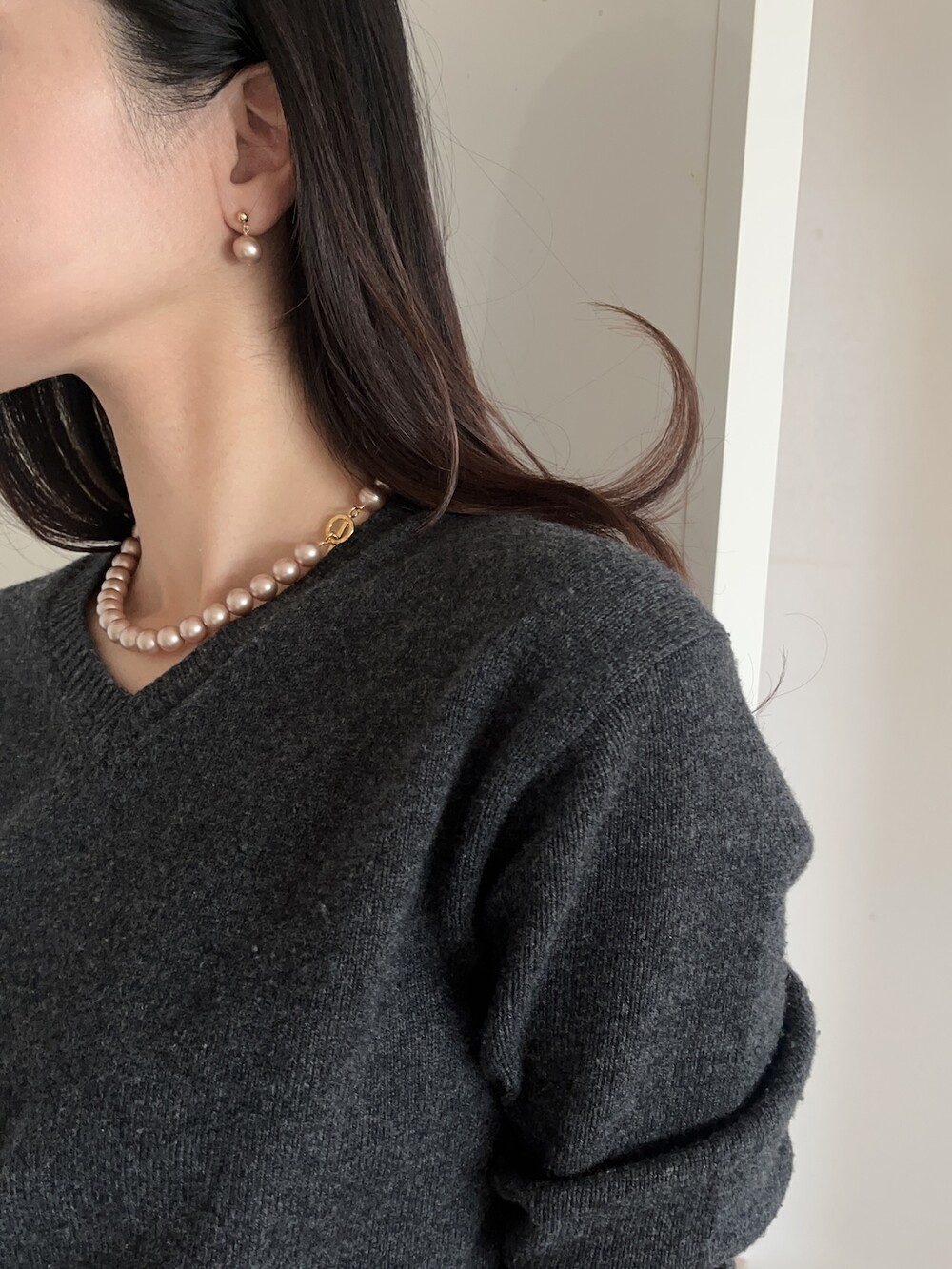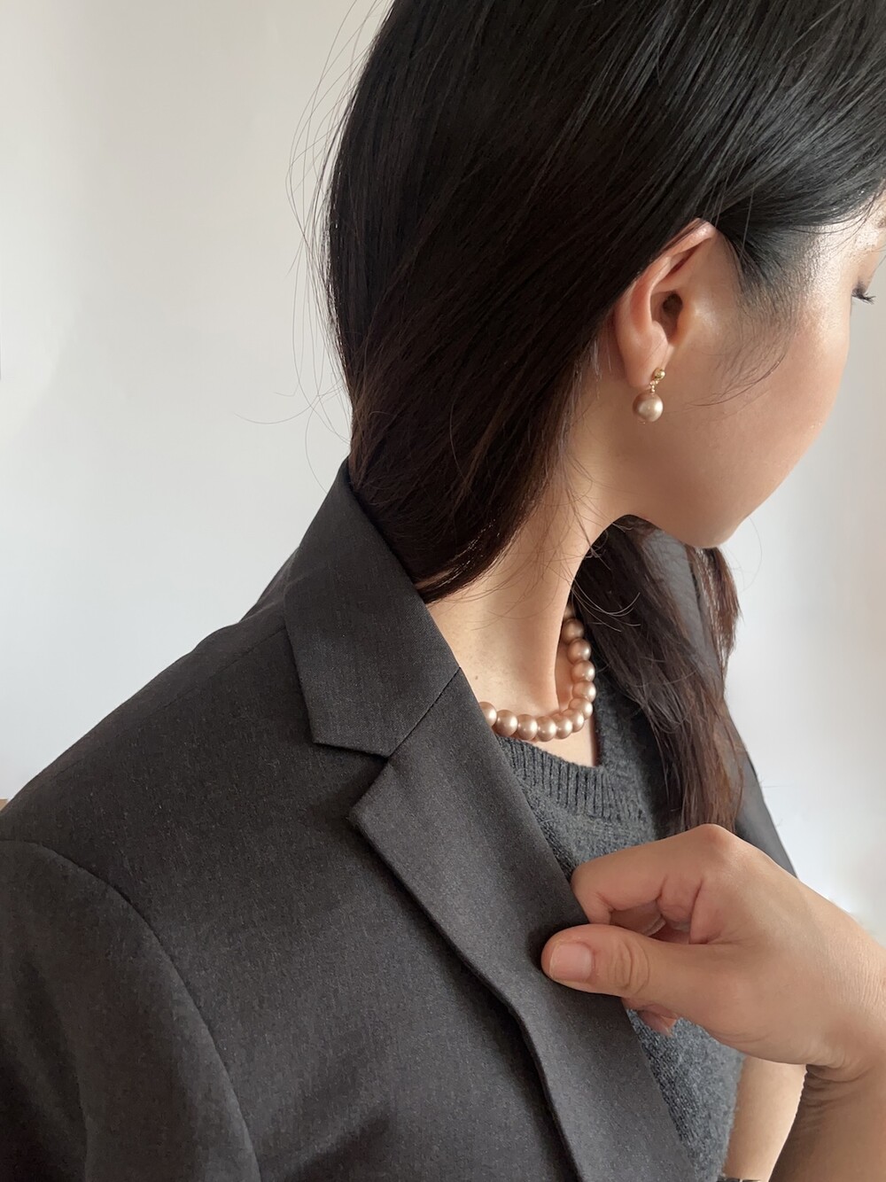 처음에는 유색 진주가 괜찮은가? 하다가도 막상 착용을 해보면 어떤 룩과 스타일에도 자연스럽게 어울립니다.
