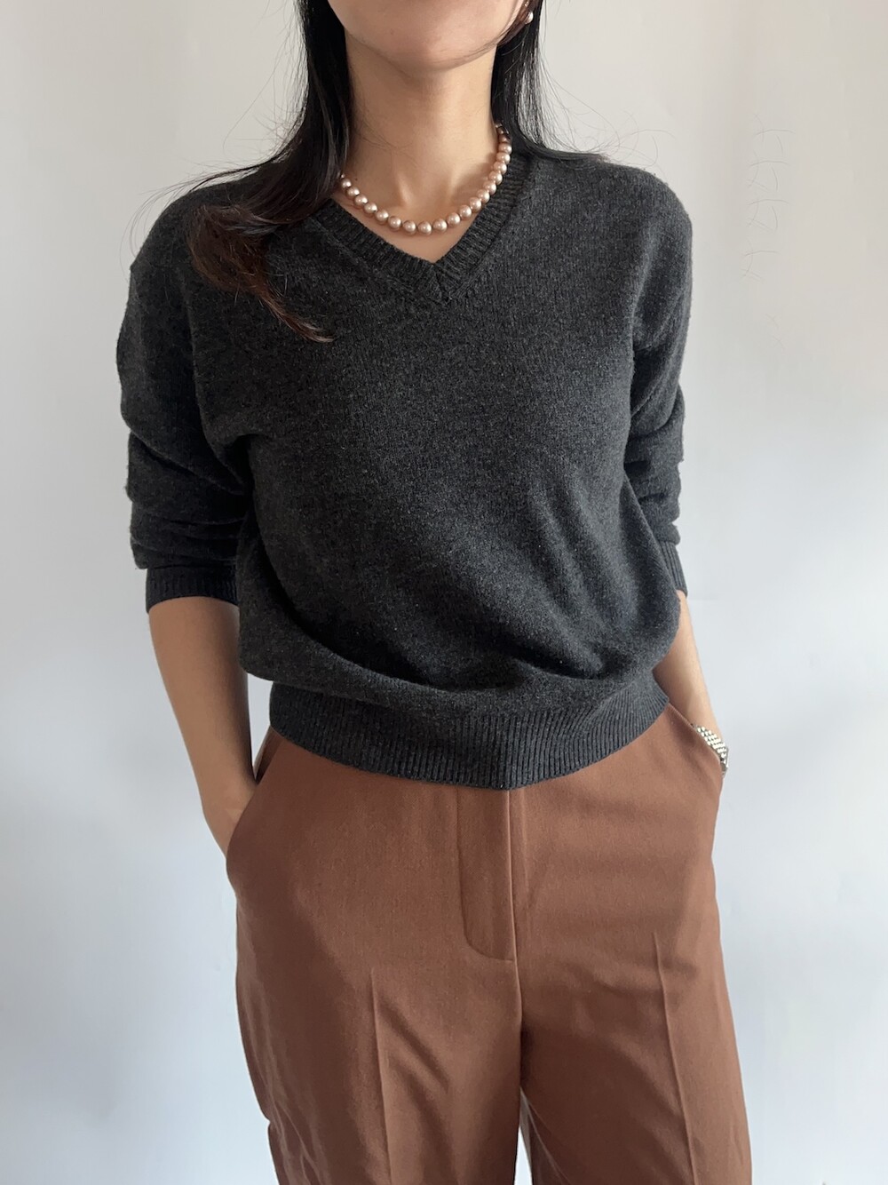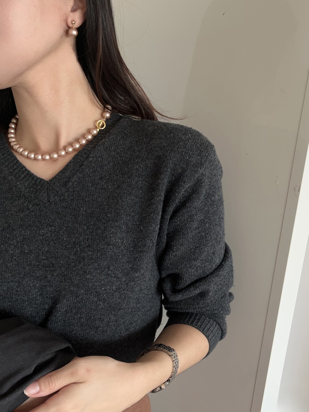 진주목걸이를 착용했을때 어느정도 무게감이 있어야 부드러운 옷감과 잘 스타일링되고