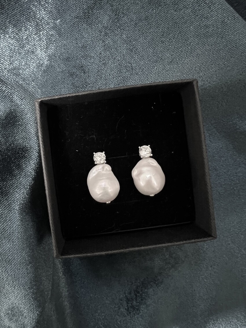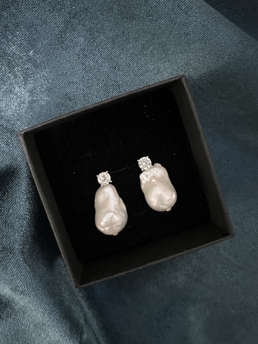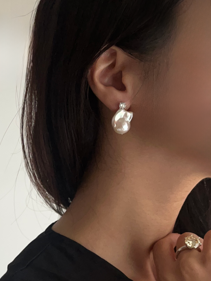 심플하게 귓볼에 포인트를 주면서 아래쪽으로 시선을 집중시켜 바로크 진주의 존재감을 더 도드라지게 보이게 하는