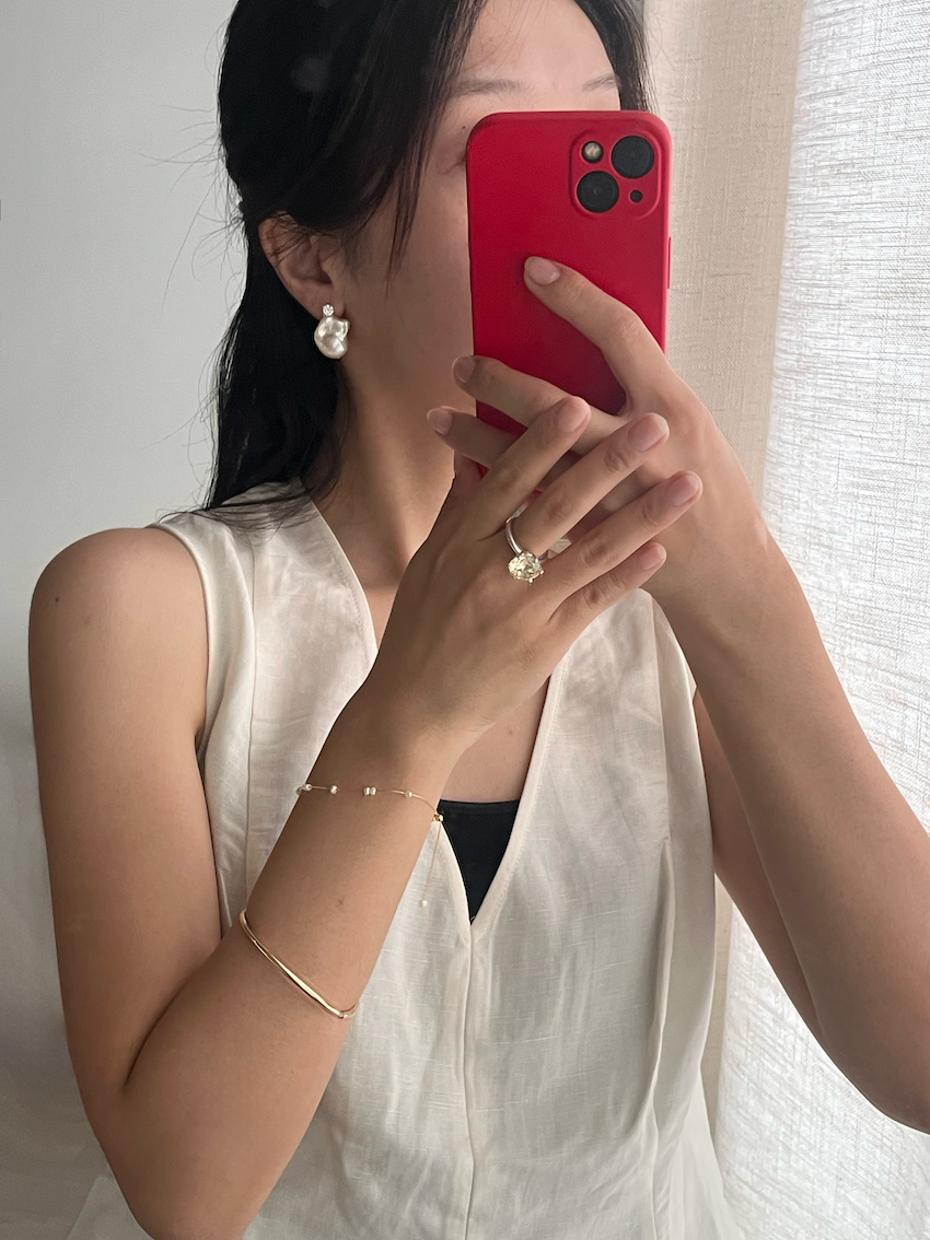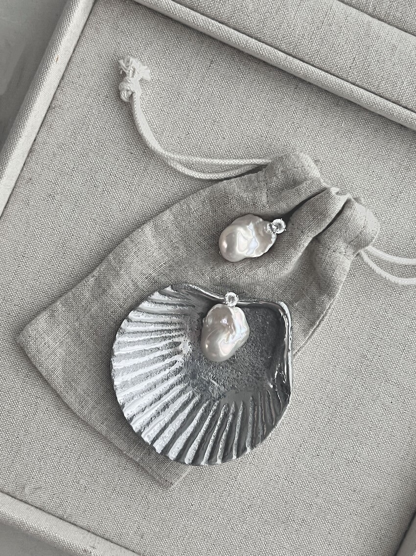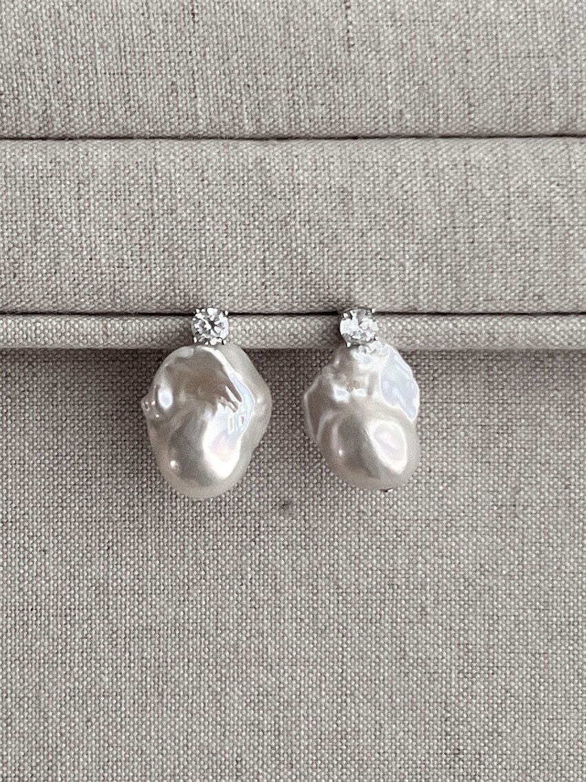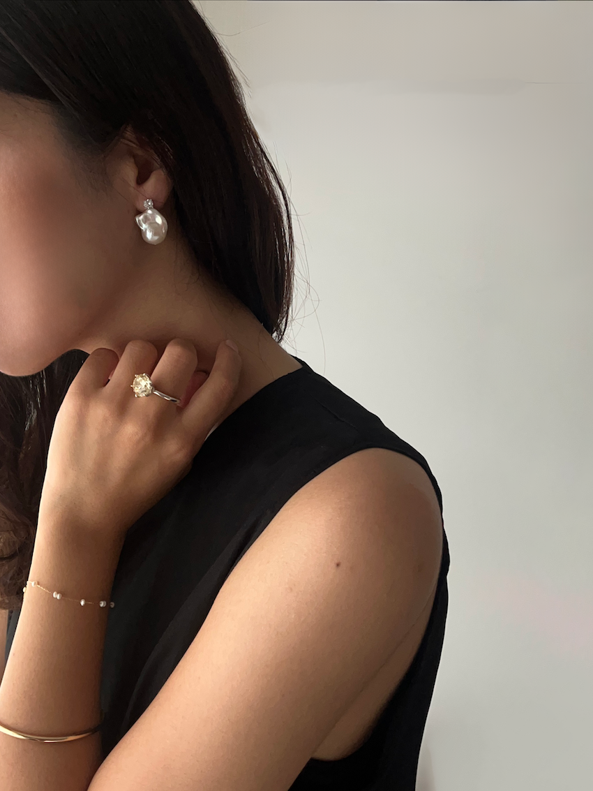 심플하게 귓볼에 포인트를 주면서 아래쪽으로 시선을 집중시켜 바로크 진주의 존재감을 더 도드라지게 보이게 하는