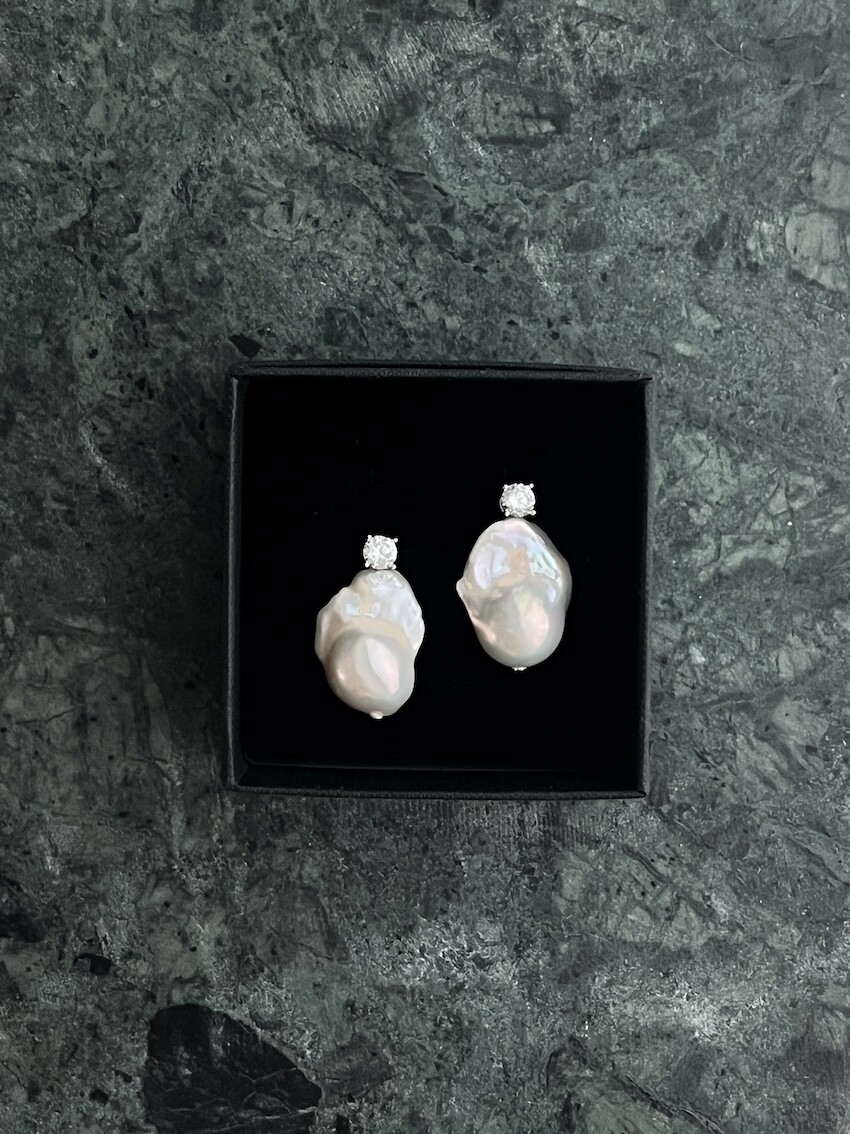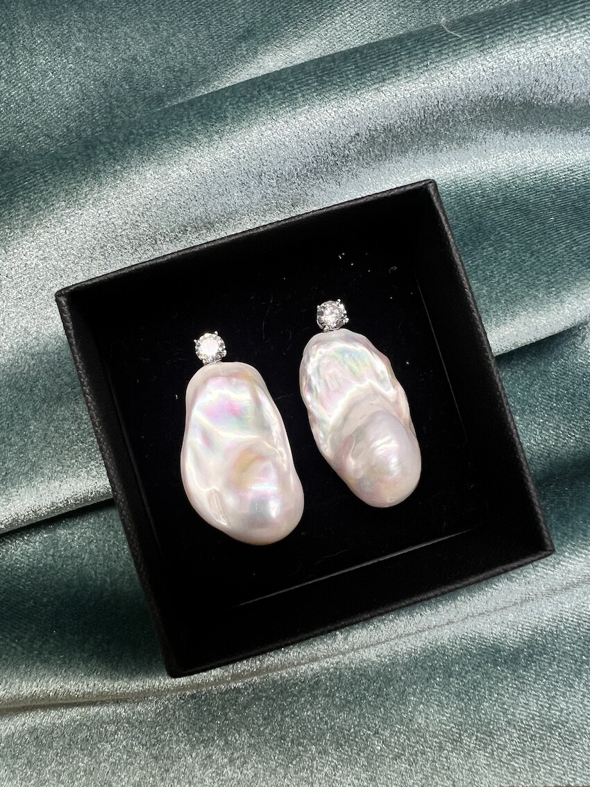 바로크 진주의 전형적인 형태를 자랑하는 프리미엄급의 바로크 진주 귀걸이입니다.