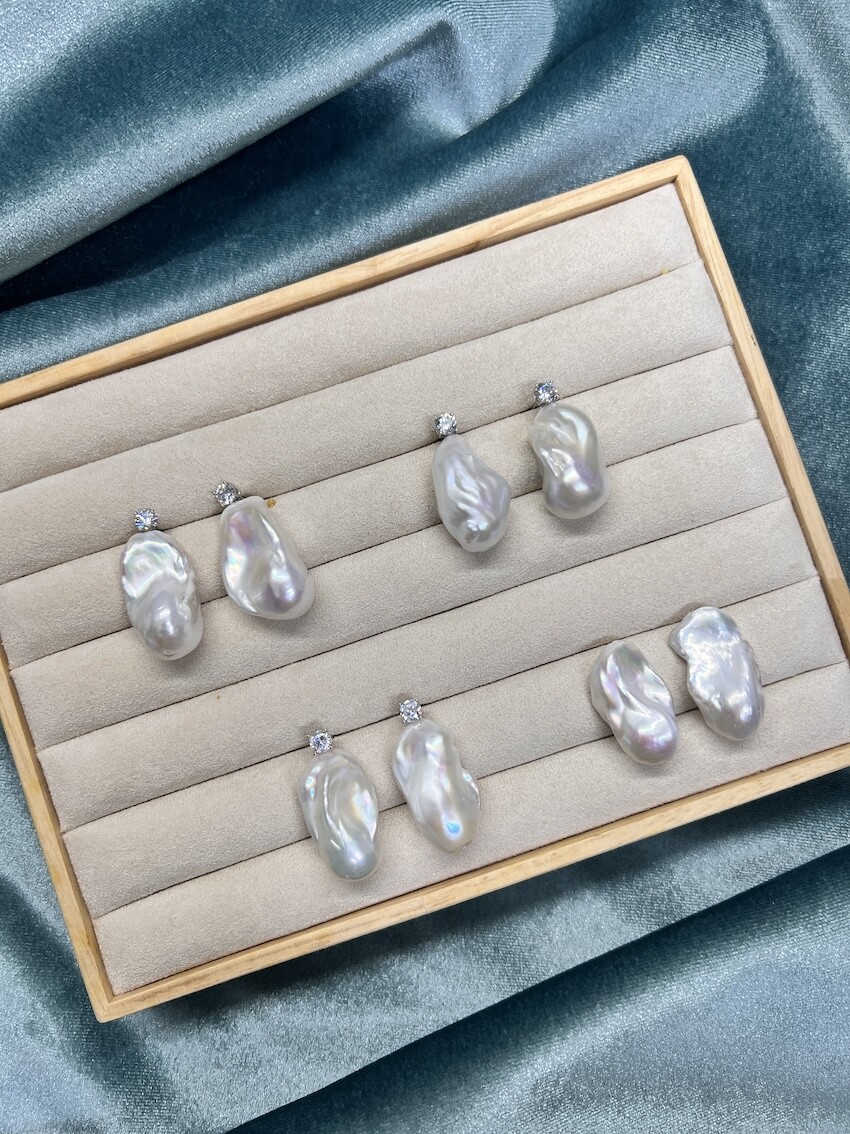 이번에 사용된 진주는 바로크 진주중에서도 표면이 두꺼운 편이라 오로라빛의 광택감이 많은 편인 진주입니다.