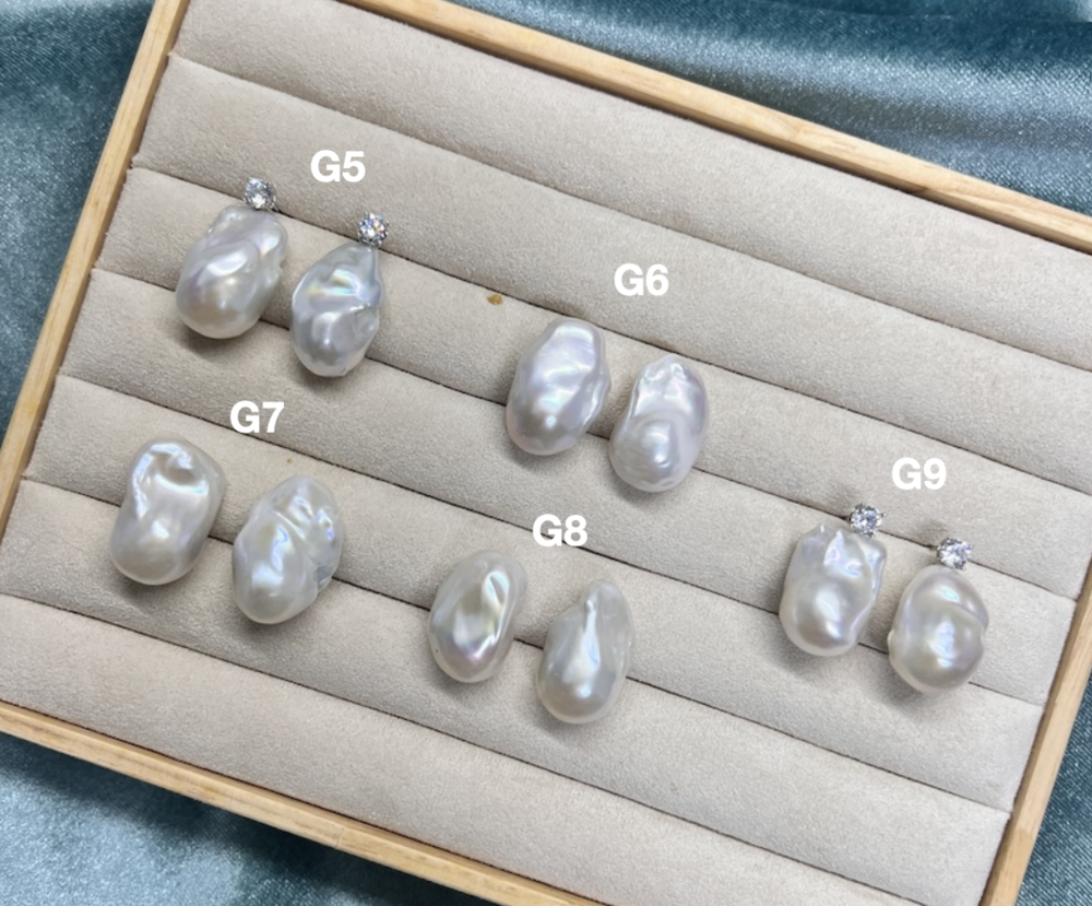G5부터 G9까지 5가지는 표준사이즈보다 약간 큰 사이즈로 모델이 착용한 진주보다 약 10%정도 큰 사이즈입니다.