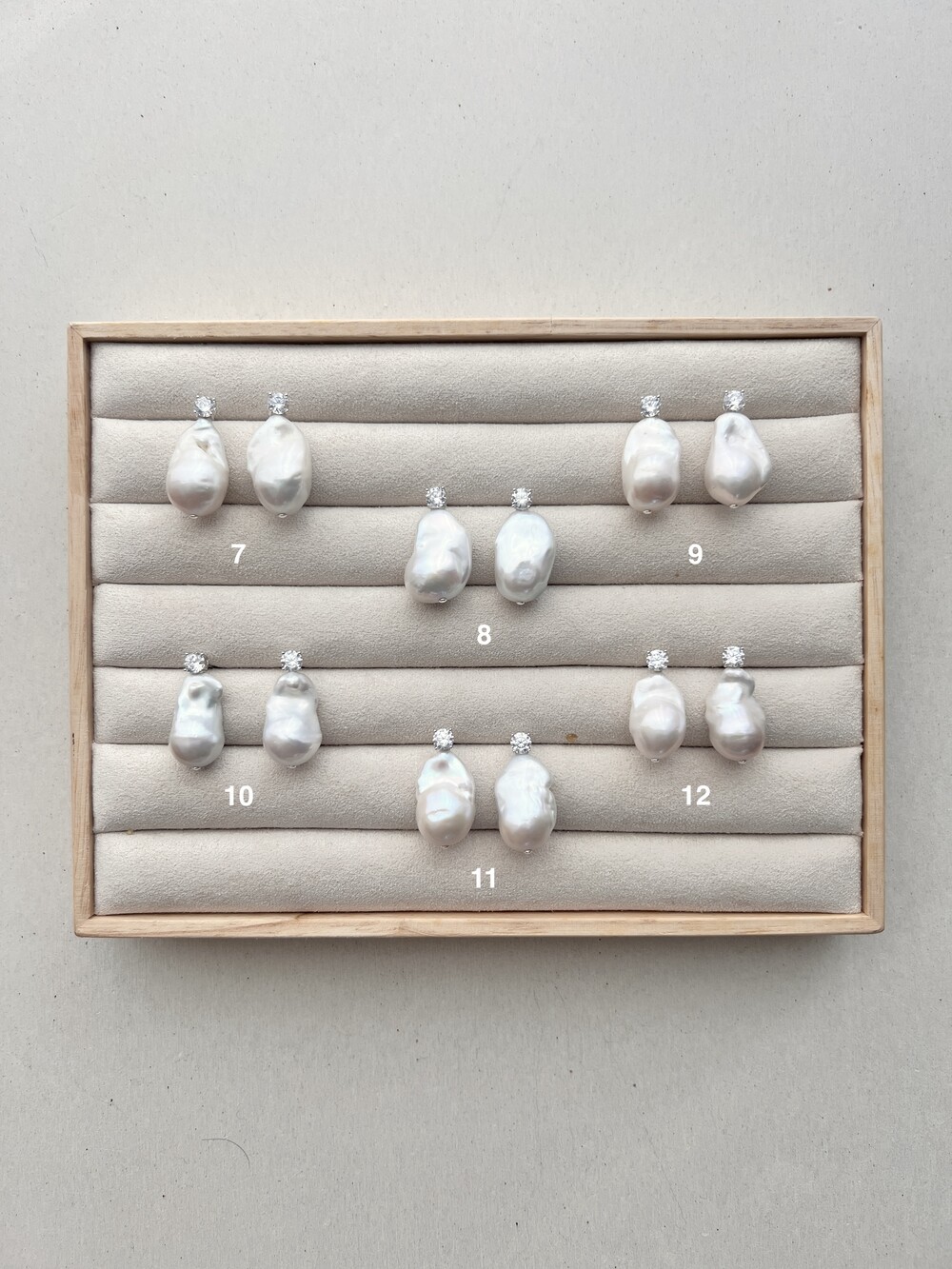 너무 크거나 작지 않게, 가장 최적화 된 사이즈로 물방울 형태에 가까운 진주들로 엄선했습니다.