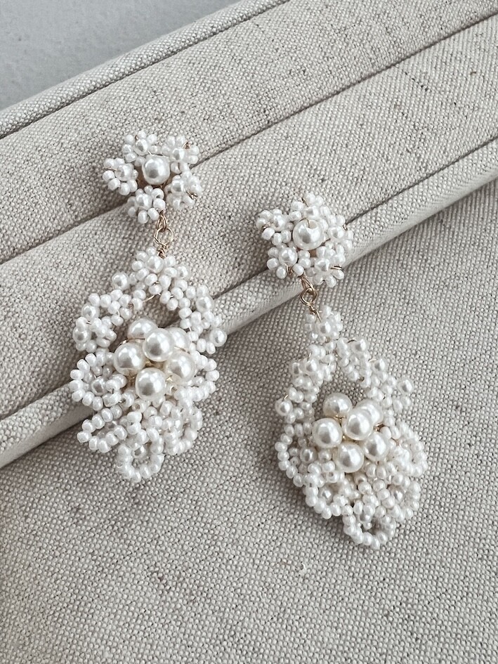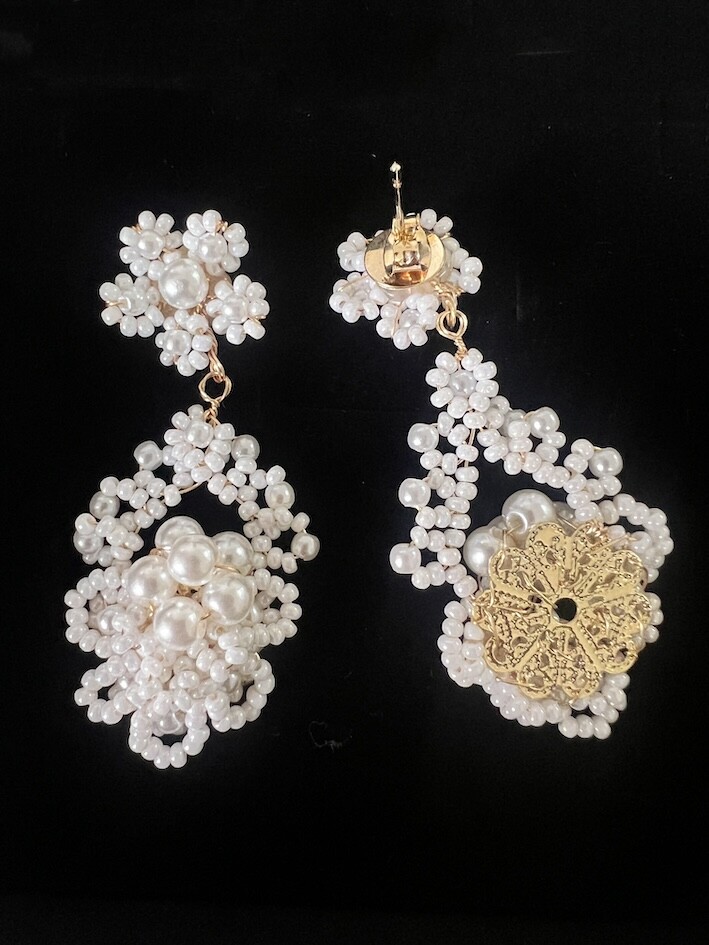 전체적으로 씨드비드와 아크릴 진주로 만들어졌습니다