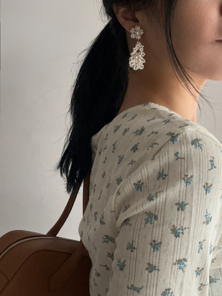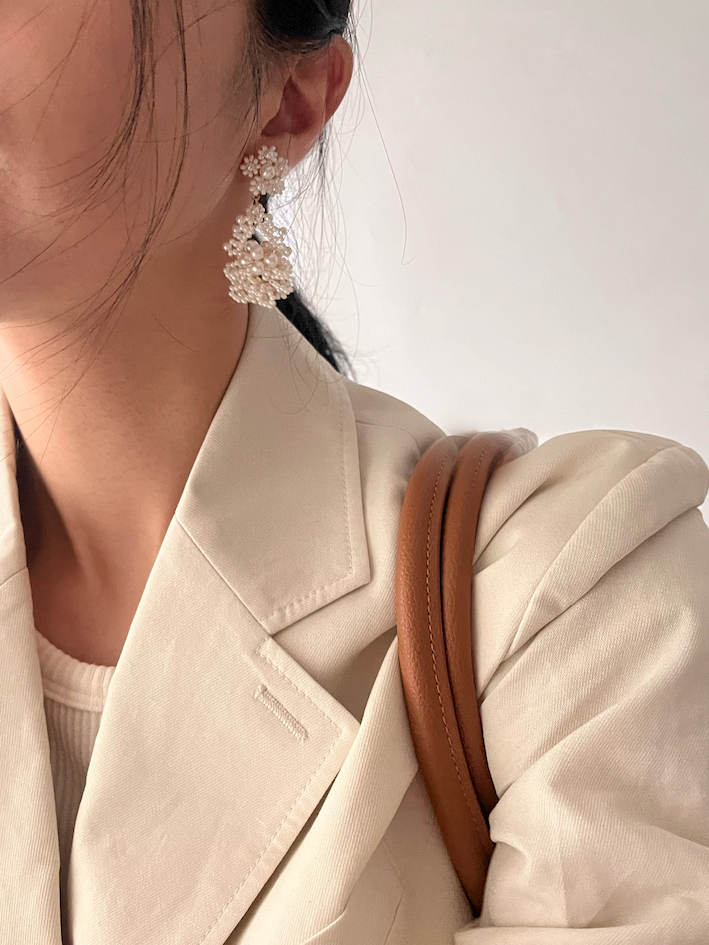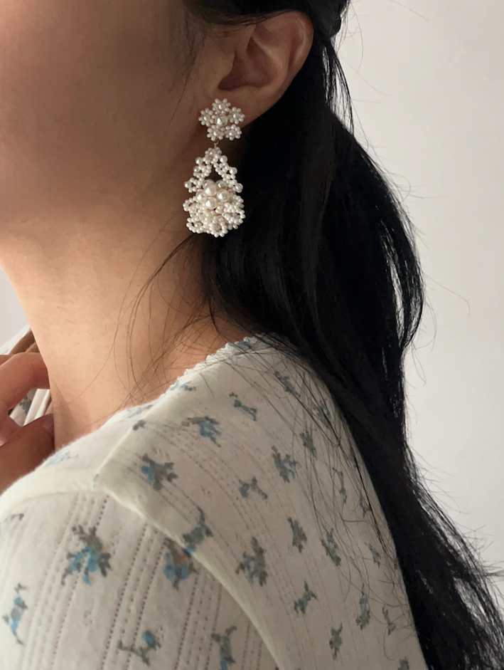 전체적으로 핸드비딩으로 만든 작품같은 피스이기때문에 비즈와 진주를 지나가는 얇은 와이어는 모두 노출됩니다