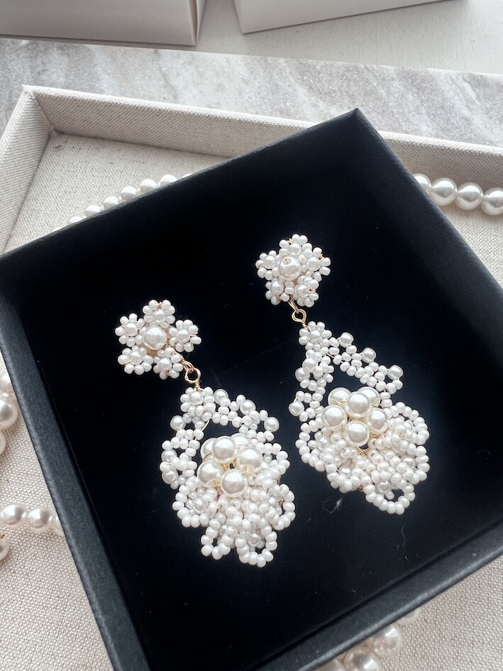 이 패턴이 떠오르는 디자인의 진주귀걸이 소개합니다.