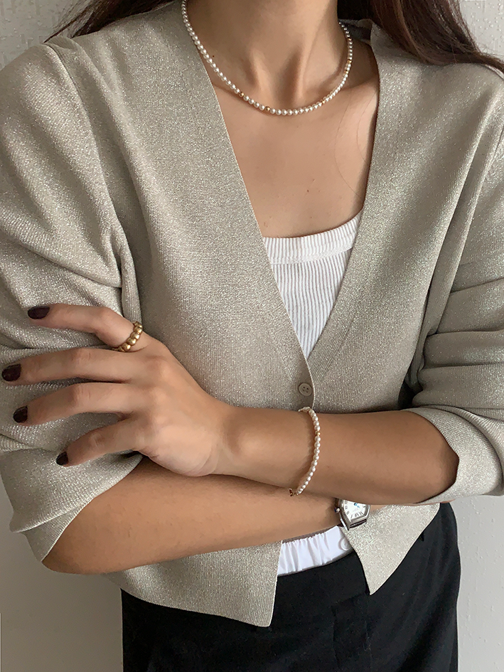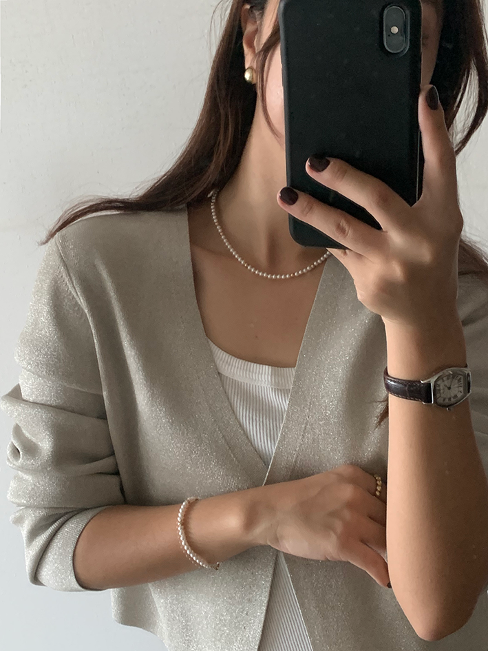 얇은 라인을 그리며 자연스럽게 넥라인에 떨어지는 작은 진주들의 느낌이 아주 우아하고 고급스럽습니다.