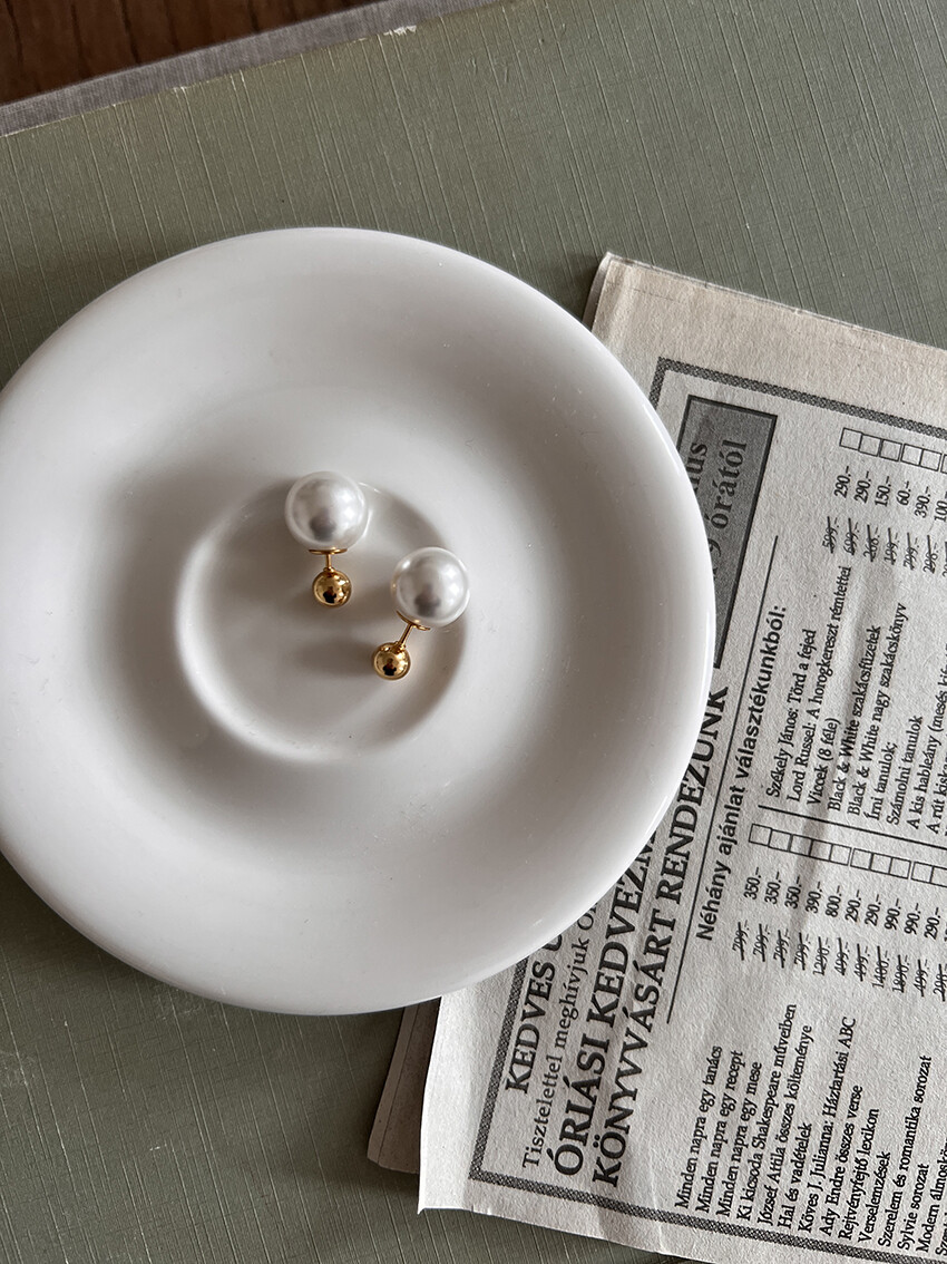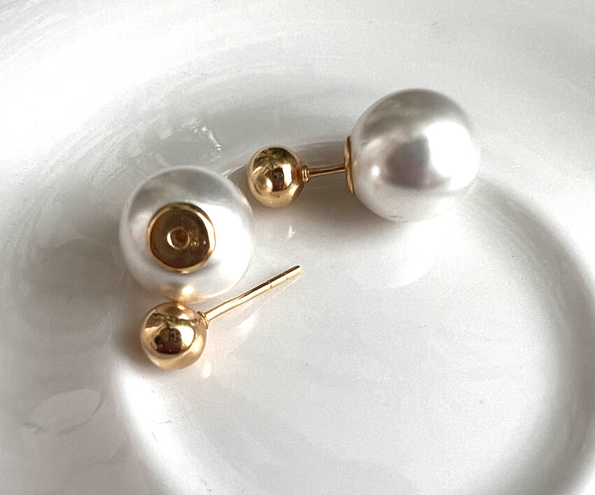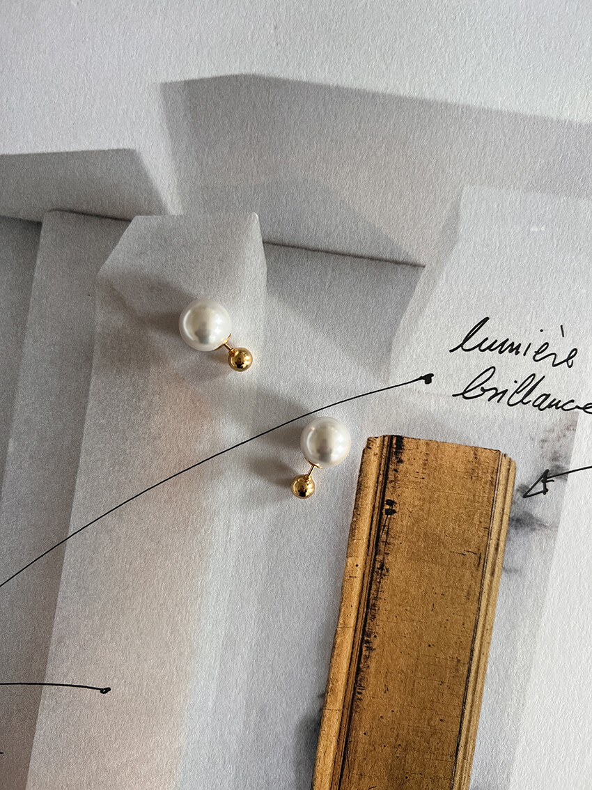 12mm의 진주 클러치 겸 이어링과 6mm의 골드 도금된 실버볼이 만나 1년 내내 애정하게 될 귀걸이를 만들었습니다.