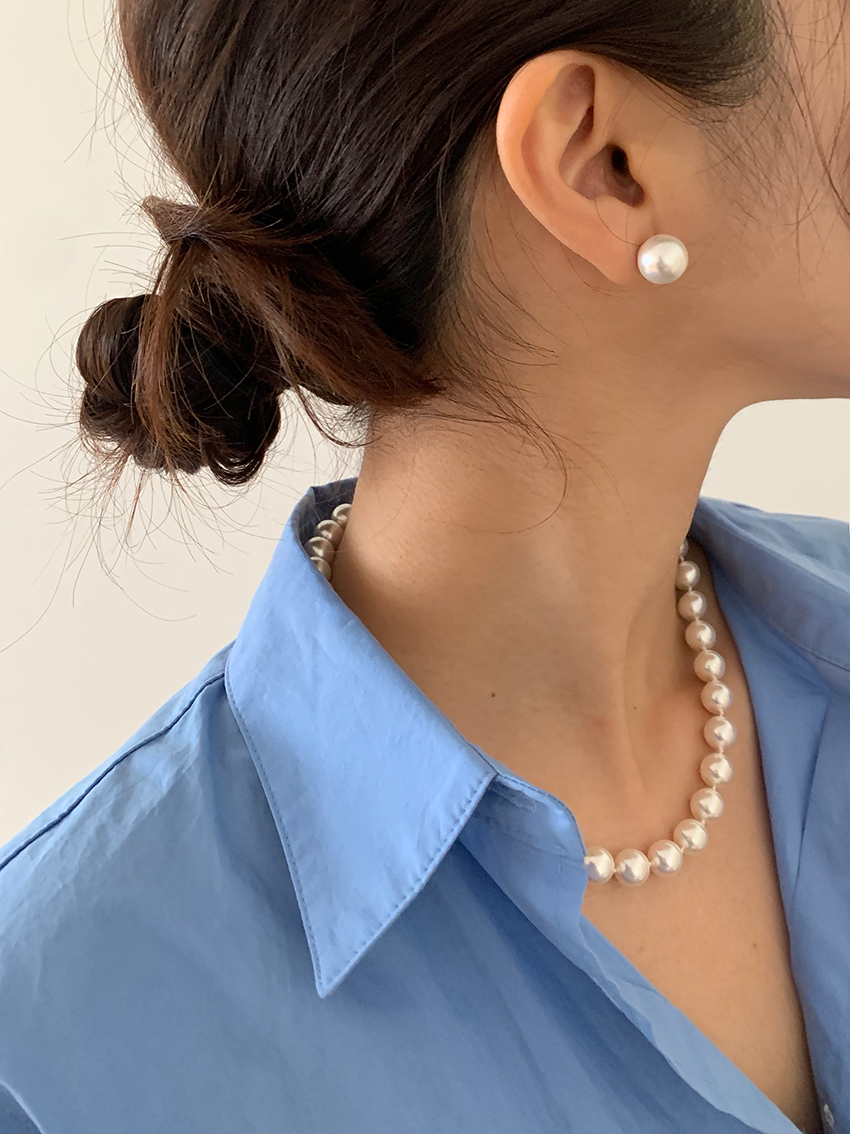 진주가 앞쪽으로 오도록해서 12mm 크기의 진주 귀걸이로 볼드한 스타일링을 하기에도 충분합니다.