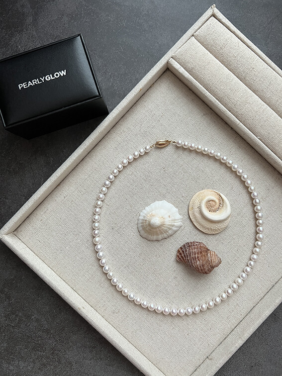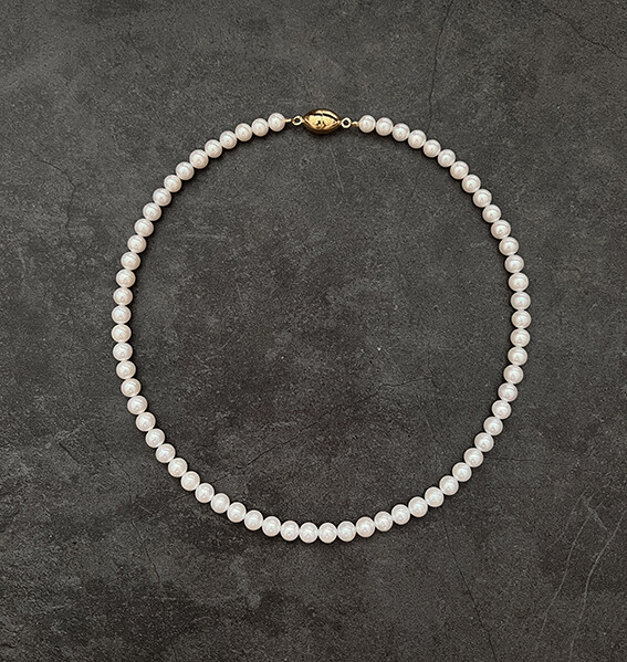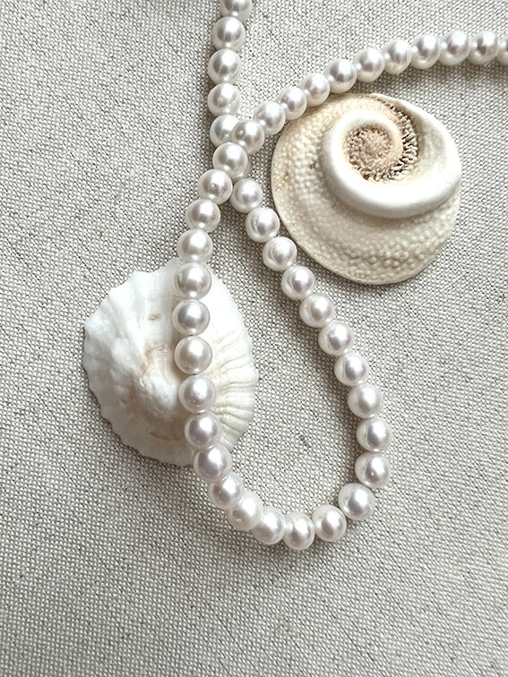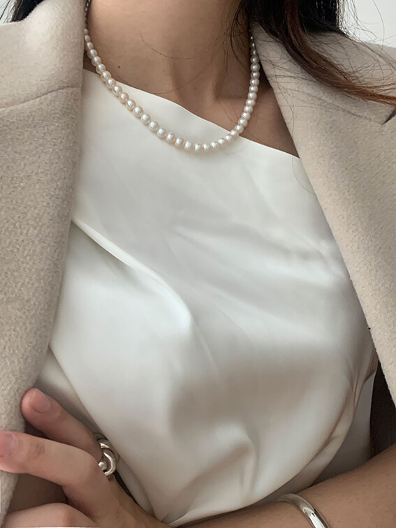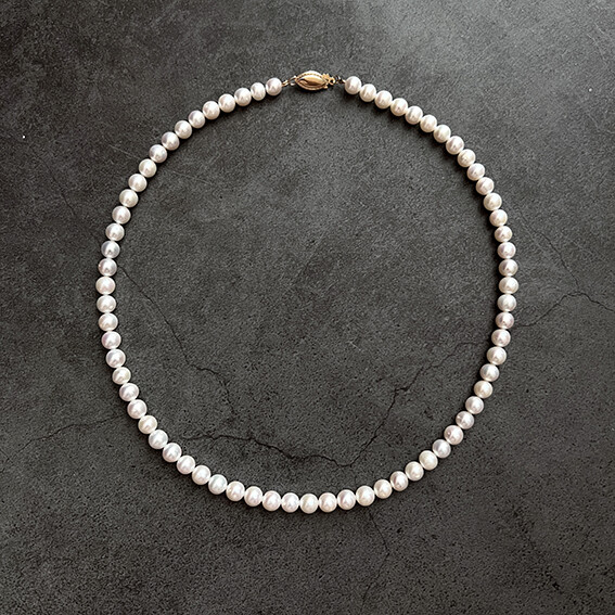 6mm 사이즈의 천연 담수 진주를 사용했으며 가장 베이직한 프린세스 라인 길이로 제작되었습니다.