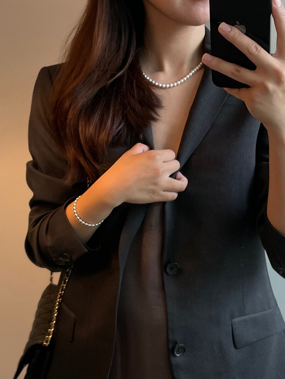 6mm의 사이즈는 8-10mm 정도의 사이즈 진주에 비해 조금은 캐주얼해보이기도하고 너무 도드라지지 않아서