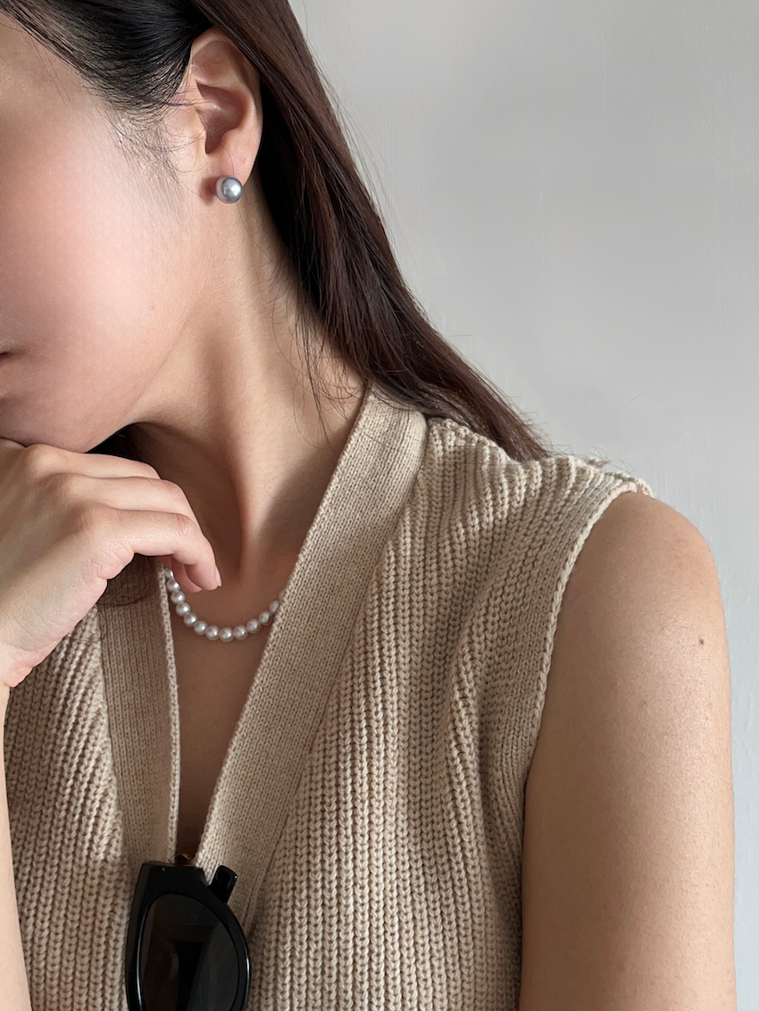 한국인의 피부톤이 일반적으로 약간 웜톤이다보니 서양인들보다 훨씬 더 크리미한 컬러의 진주가 잘 어울리는 것 같습니다.