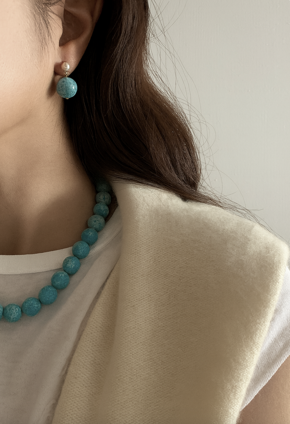 펄리글로우가 추구하는 스타일에 맞게 원석 전체가 돋보이는 비드형 목걸이와 진주 믹스된 귀걸이로 선보입니다.
