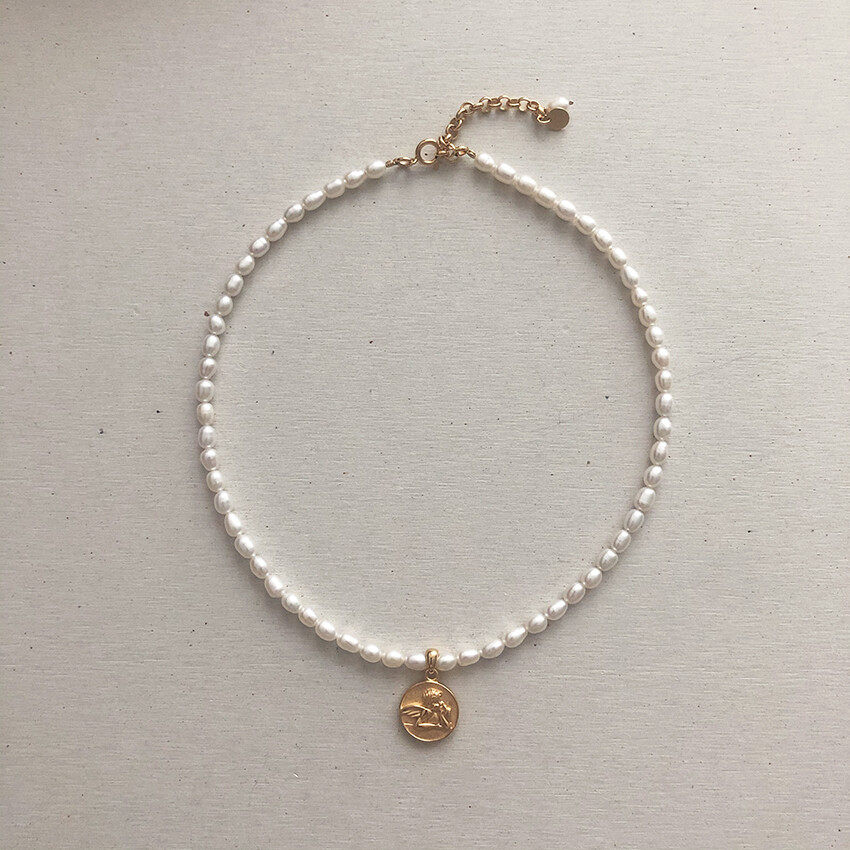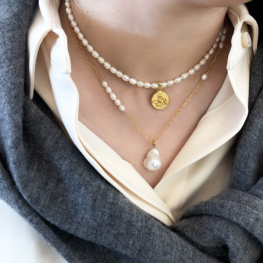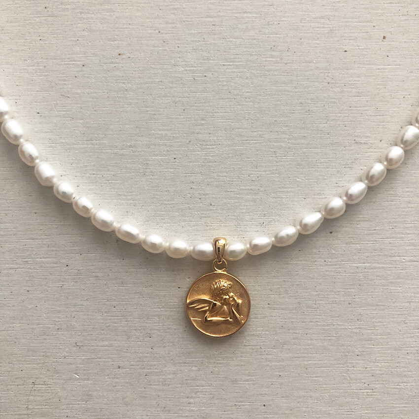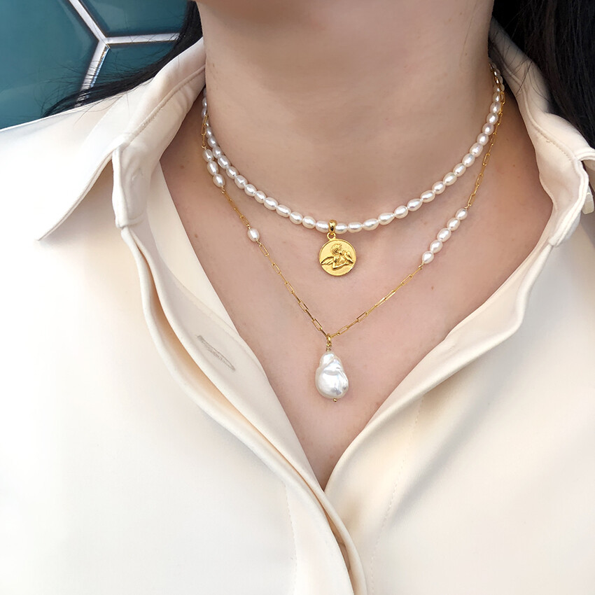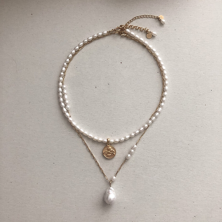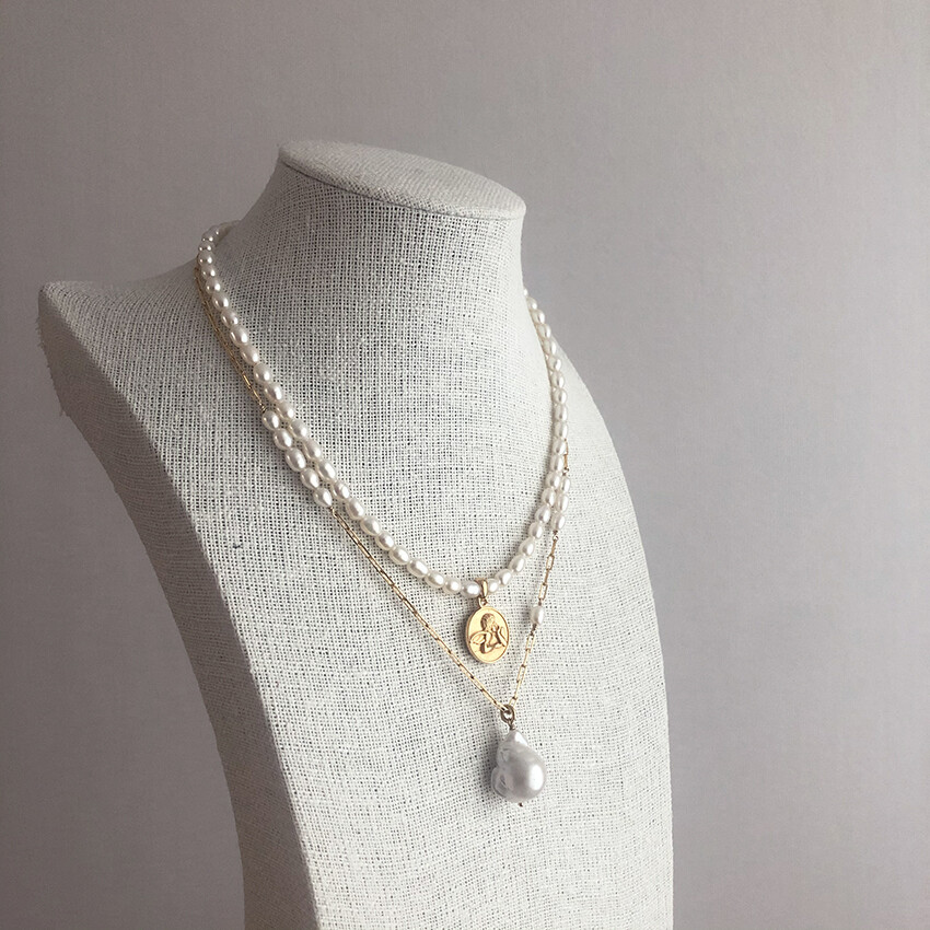 ANGEL PENDANT NECKLACE & BAROQUE PEARL CHAIN NECKLACE