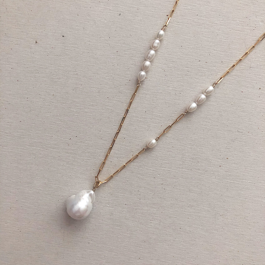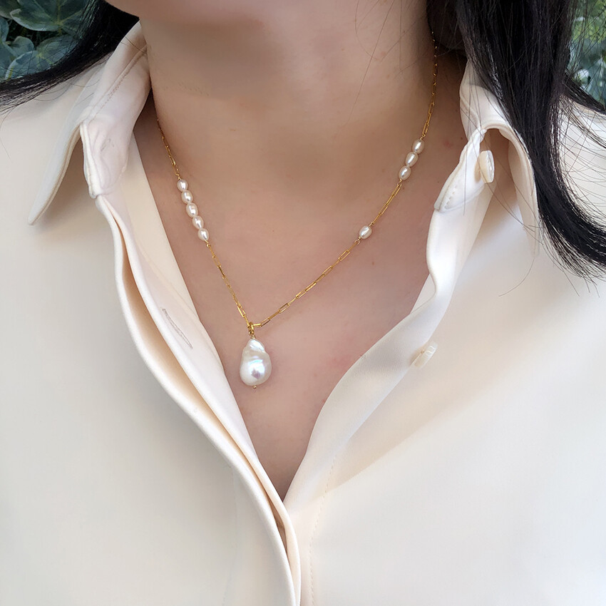 진주가 중간중간 들어간 바로크 진주 체인목걸이