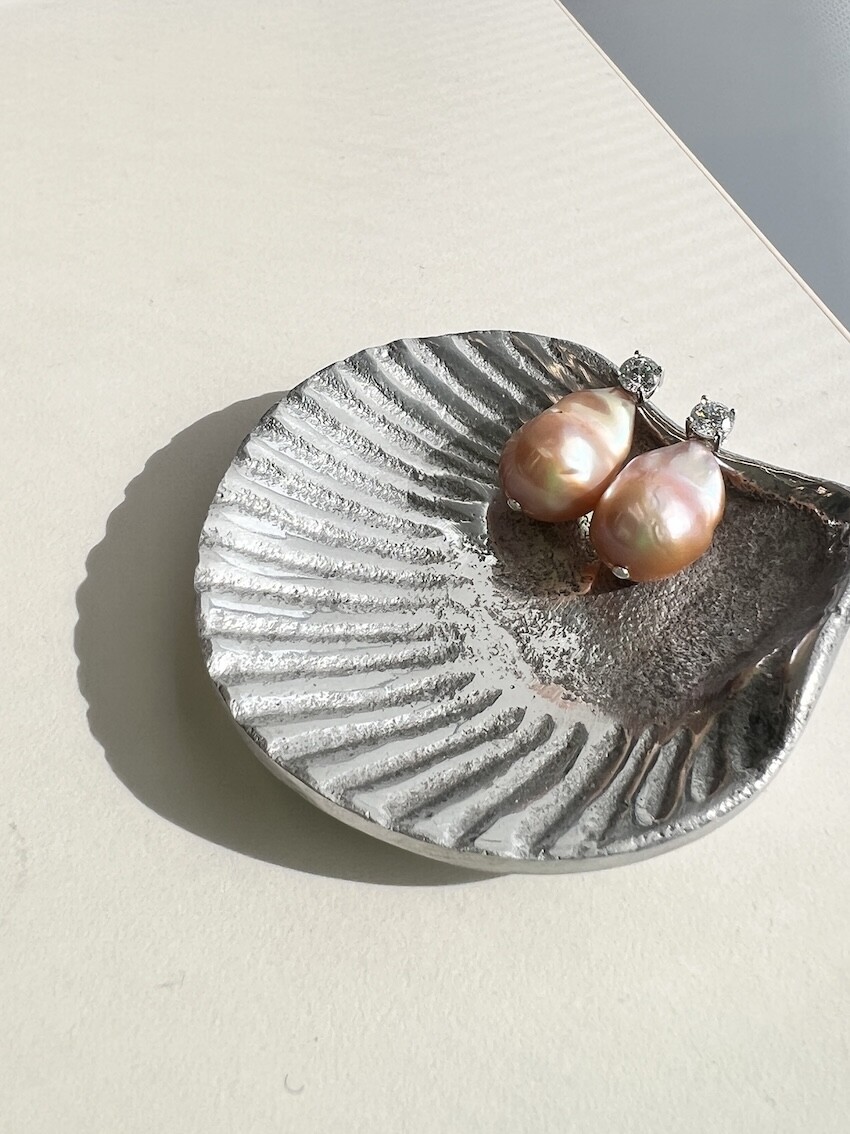 이번에 사용된 진주는 바로크 진주중에서도 표면이 두꺼운 편이라 오로라빛의 광택감이 많은 편인 진주입니다.