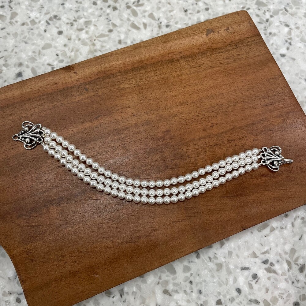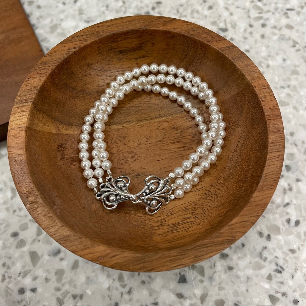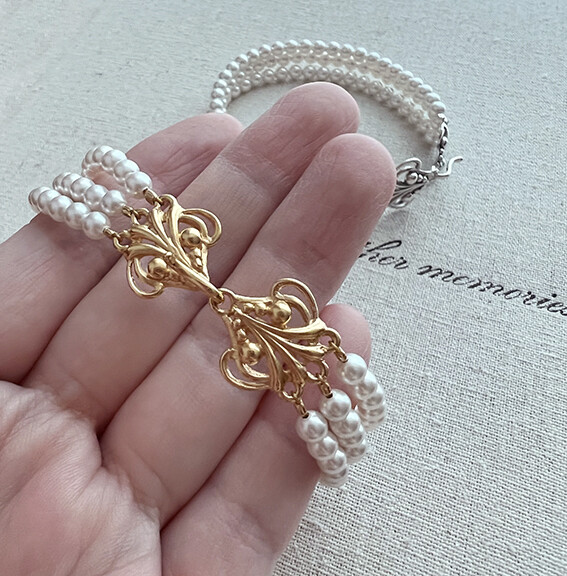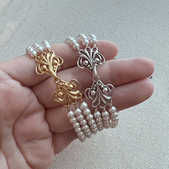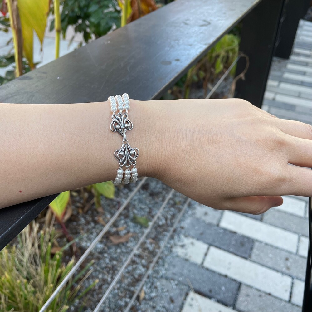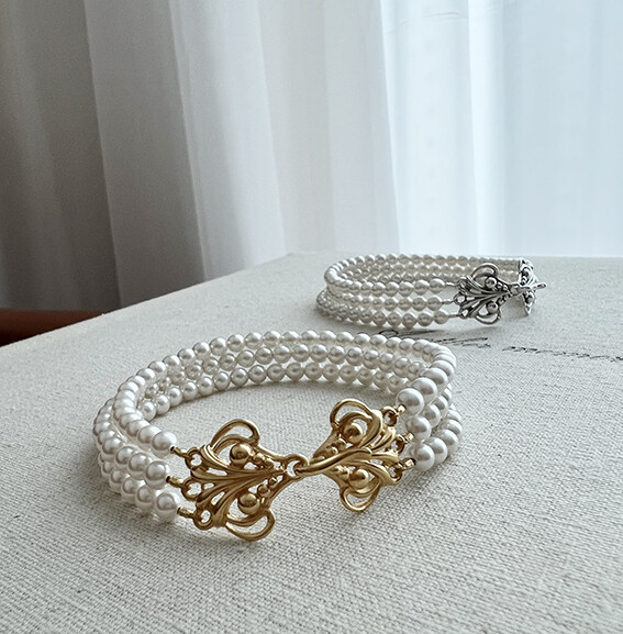 클래식한 장식의 잠금장치와 스와로브스키 진주로 만들어진 진주팔찌를 소개드립니다.