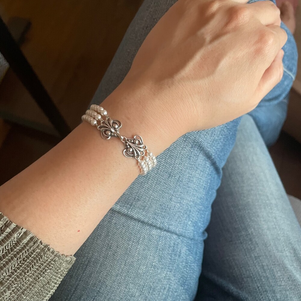 이러한 레이어드 진주 팔찌는 시중에서 쉽게 찾아지지 않습니다.