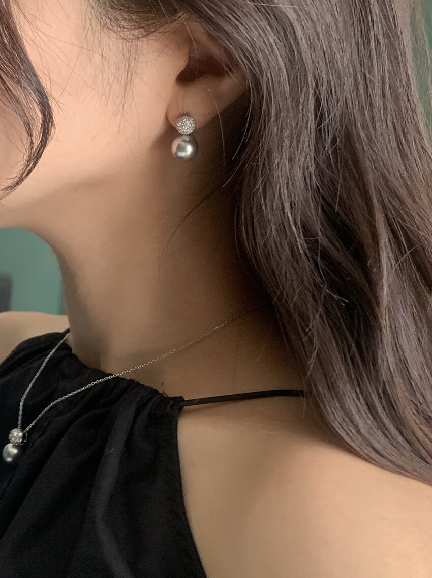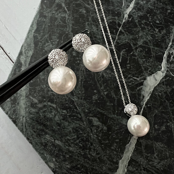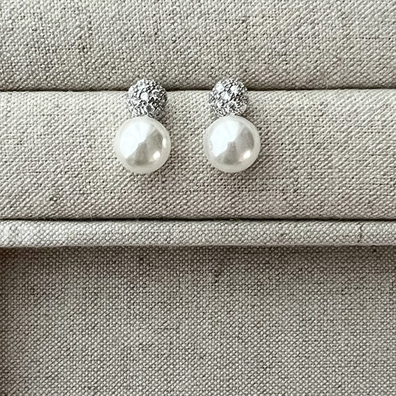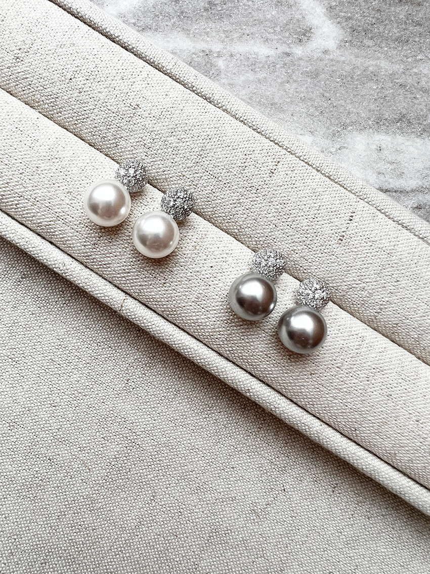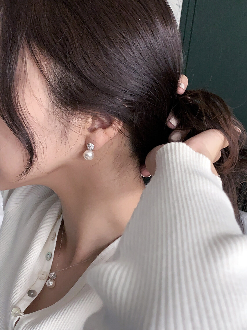 귓볼에 딱맞는 기본적인 진주 스터드 귀걸이와는 달리 훨씬 화려한 느낌이 강조되며 크리스탈 큐빅의 광채와 진주의 느낌이 조화롭게 이루어지면서 우아함을 더욱 강조하게 합니다.