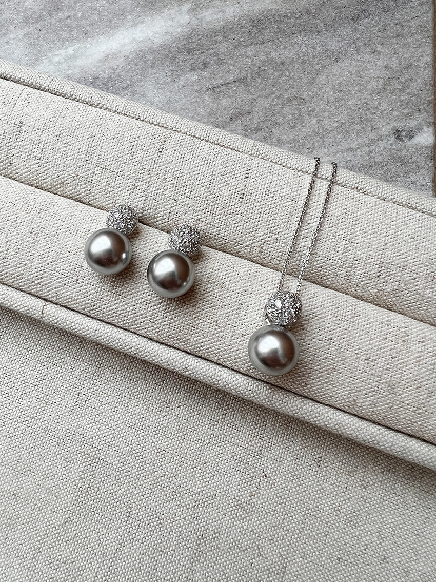 인공진주이기에 해수진주나 담수진주와 같은 천연의 은은한 느낌보다는 오히려 광택감이 있는 진주를 매칭함으로서 화사한 느낌을 더욱 강조할 수 있었습니다.