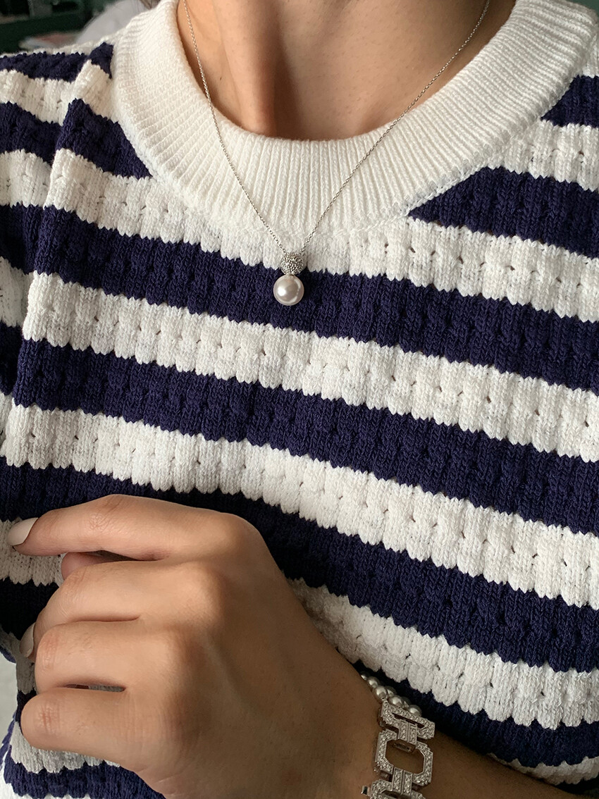 목걸이는 약 10mm 의 진주를 사용하였고, 윗부분의 볼형태 포스트는 약 7mm정도의 지름입니다.