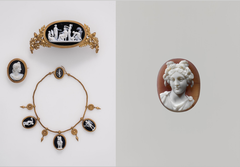 까메오는 손으로 조각한 조개,마노,대리석,산호등을 사용해 양각으로 조각을 만들어진 것으로