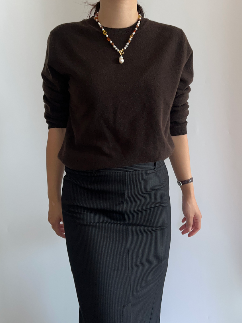 가을/겨울 시즌이다보니 터틀넥이나 두터운 소재의 옷들과 함께 할거라 상상했고 여기에 어울리게 조금은 긴듯한 팬던트 목걸이로 화룡정점을 만들면 완벽하리라 생각했습니다.