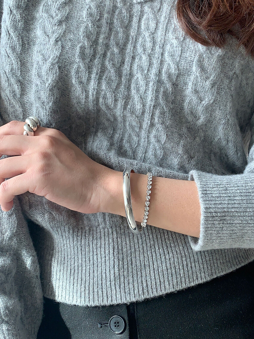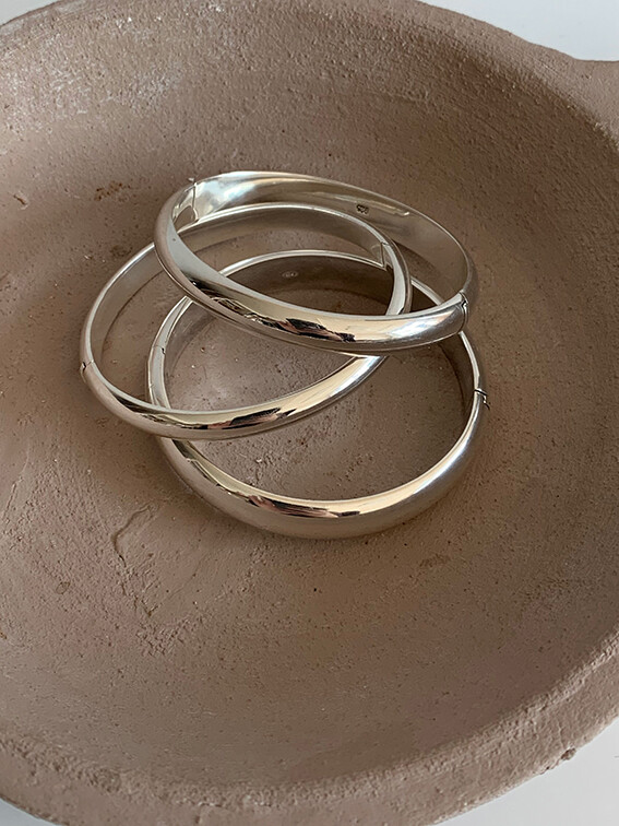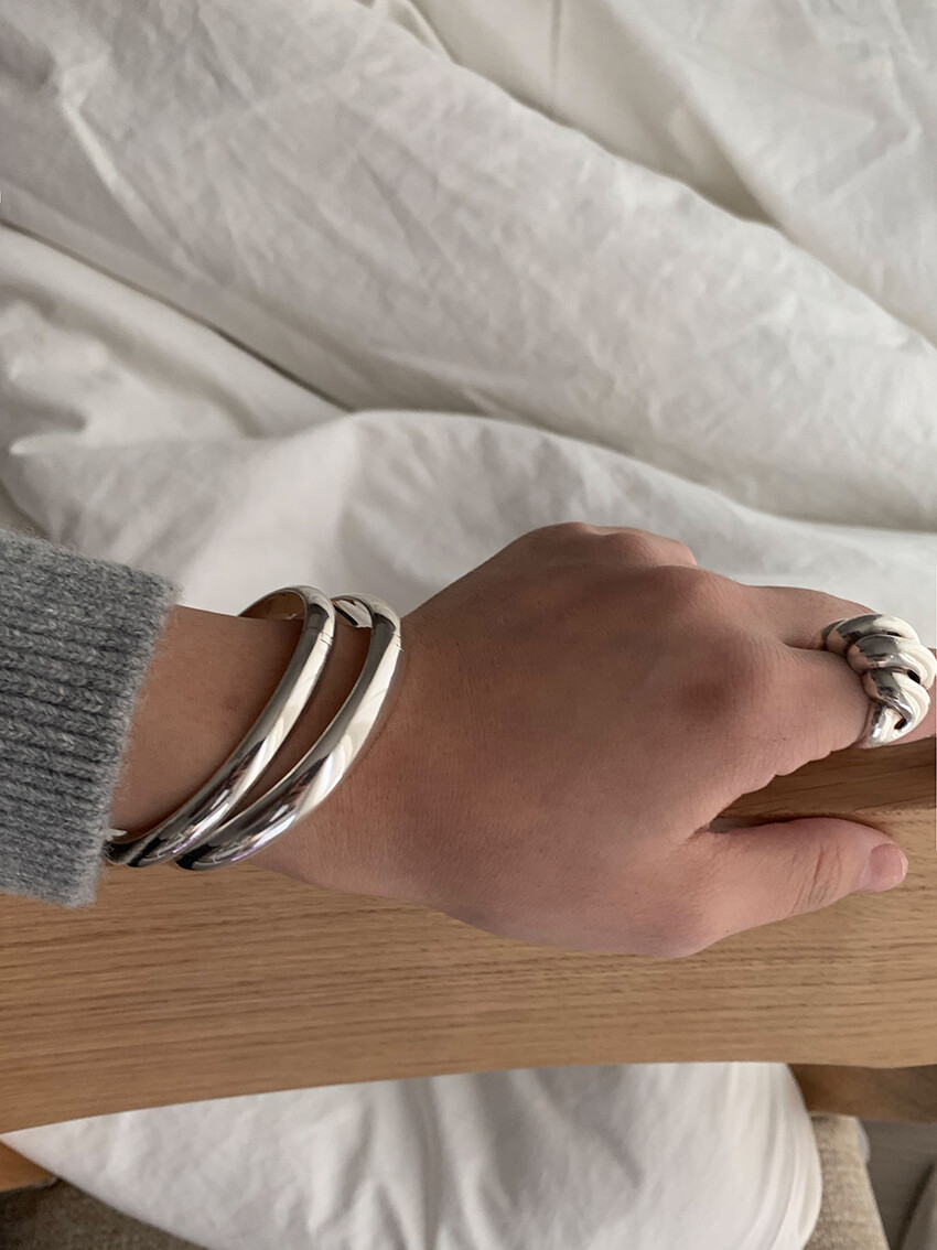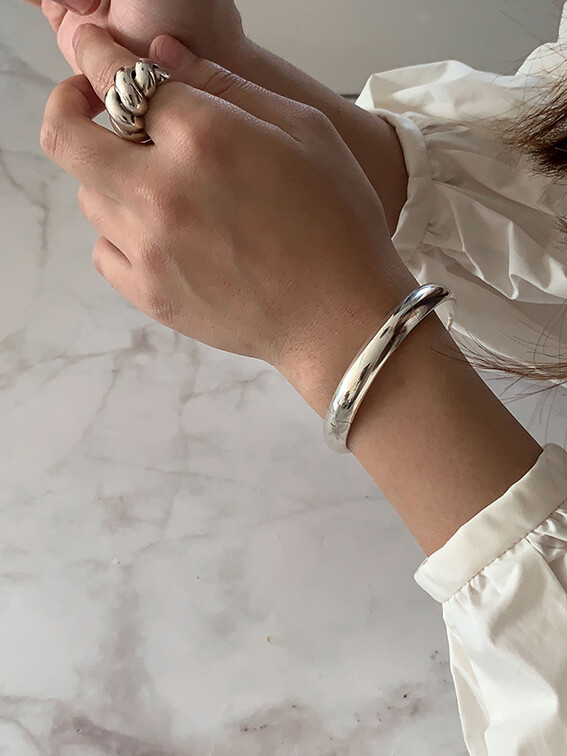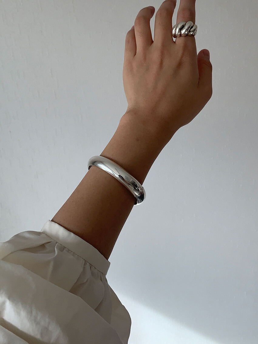 볼륨감 있고 심플하게 제작된 오픈형 뱅글 팔찌입니다.