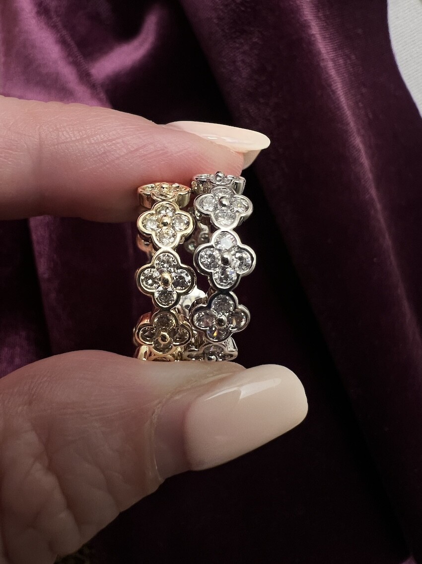 정교하게 제작된 작은 사이즈의 클로버들이 자연스럽게 연결되면서 반지의 형태를 만들었습니다.