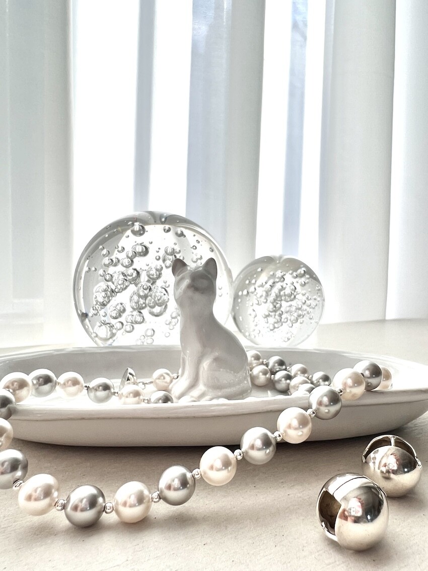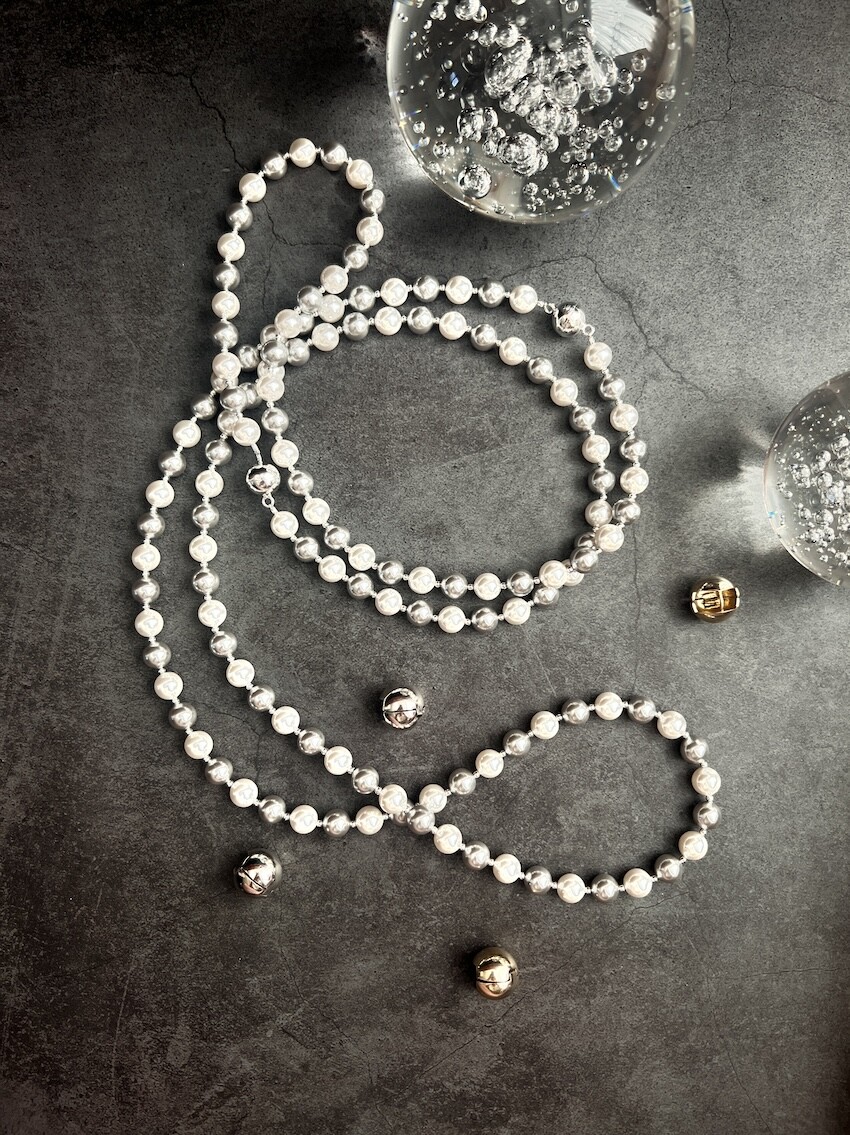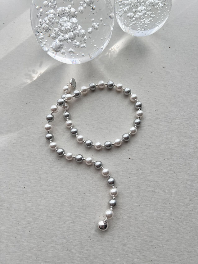 그 사이사이에는 2mm의 실버볼을 넣어 진주들 사이의 입체감을 살리고 반짝이는 화사함을 더했습니다.