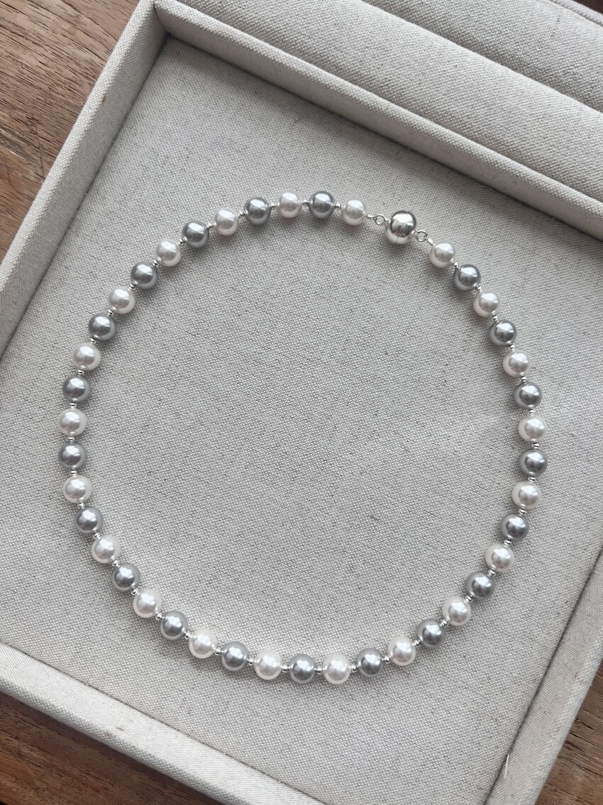 위의 이미지와 같이 화이트와 라이트 그레이 진주를 하나씩 교차로 배열했고,