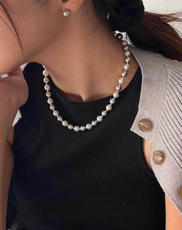 기본적으로 진주 알이 살짝 떠 있는듯한 느낌을 주어 일반적인 진주 비드 목걸이들보다는 매우 화려한 분위기가 납니다.