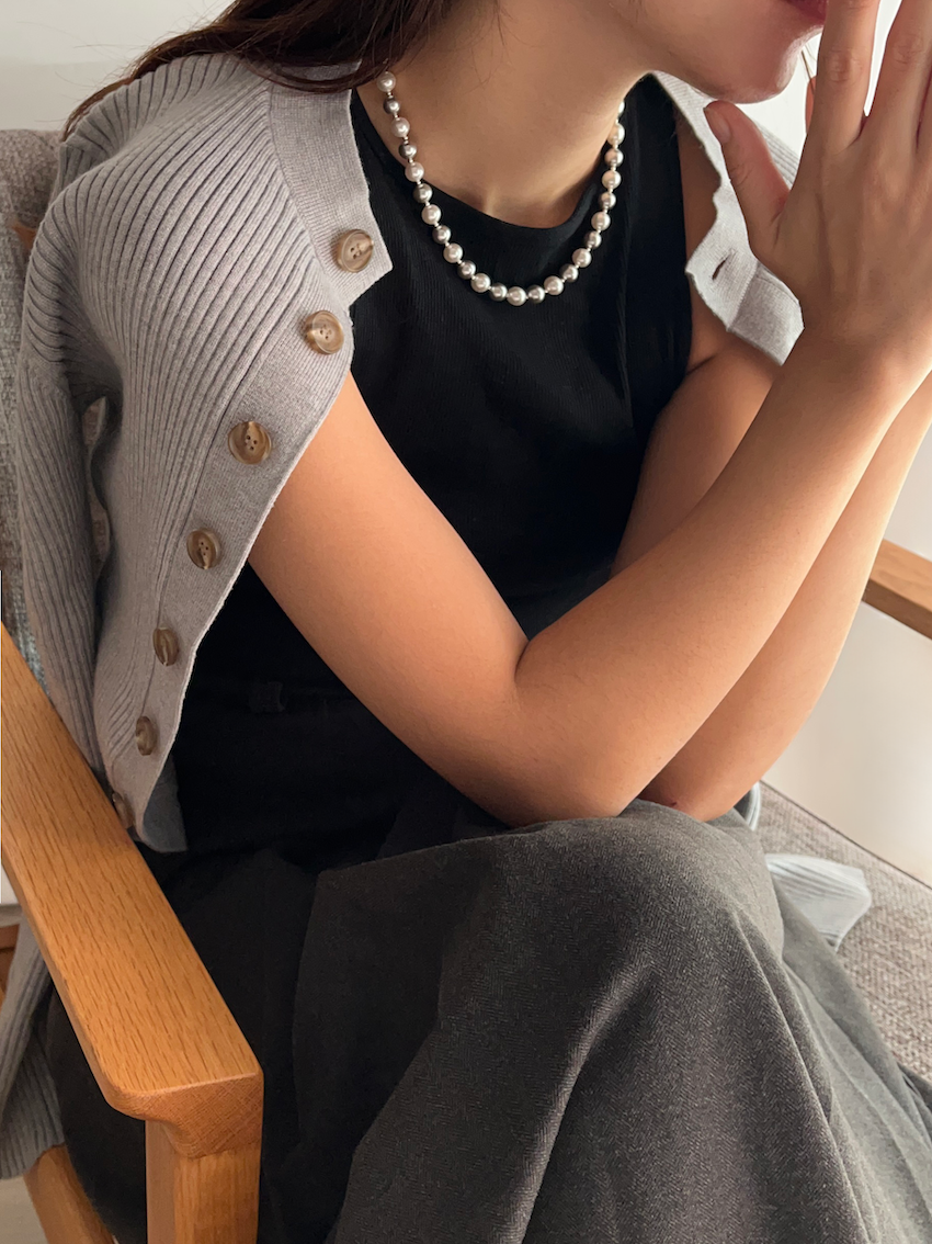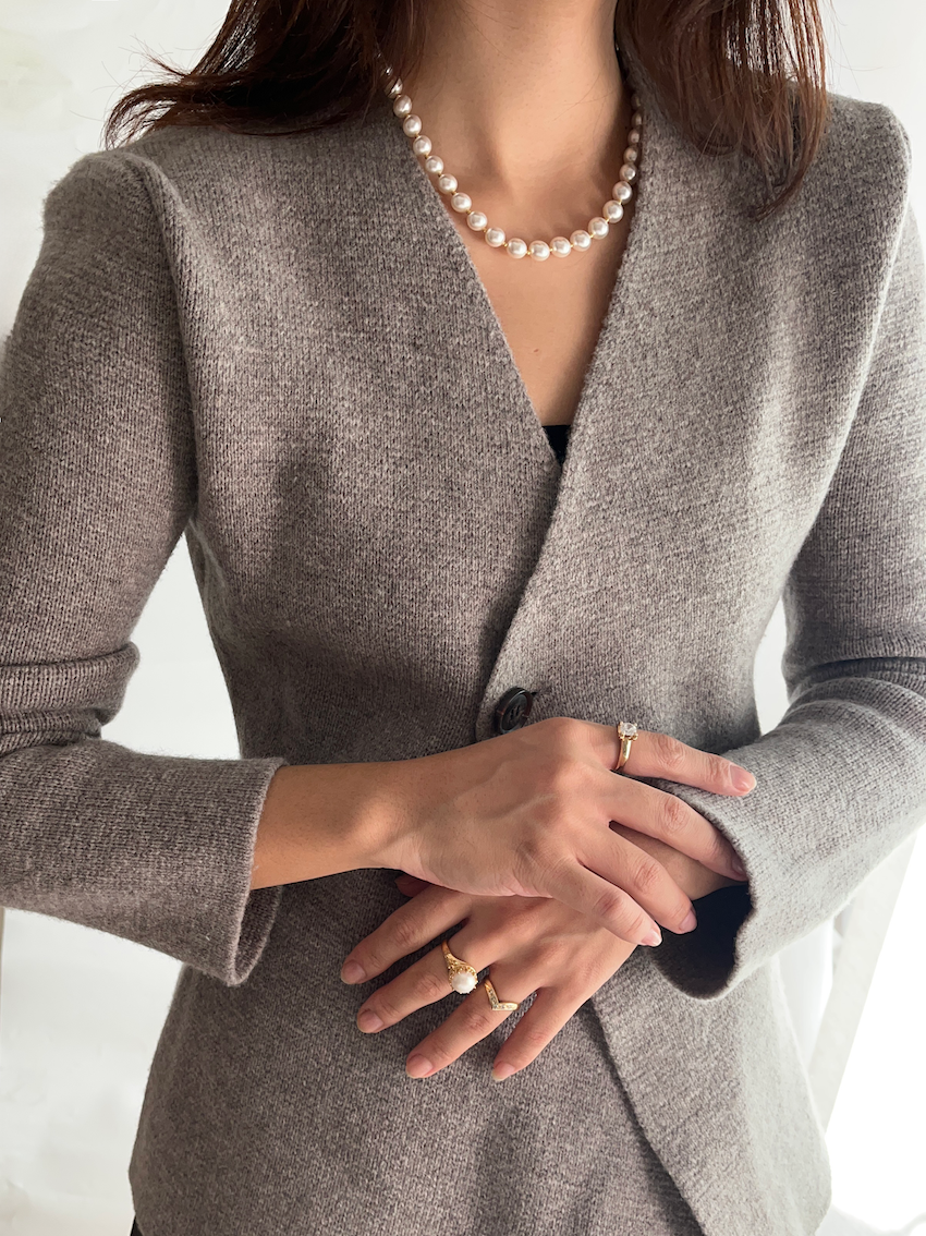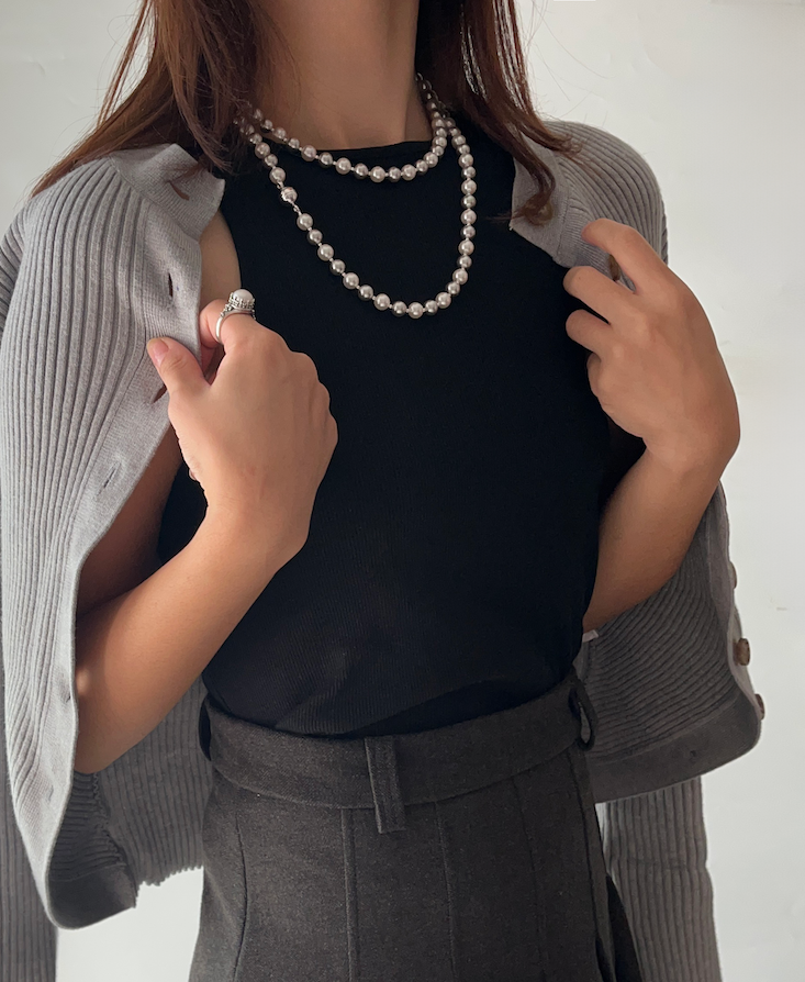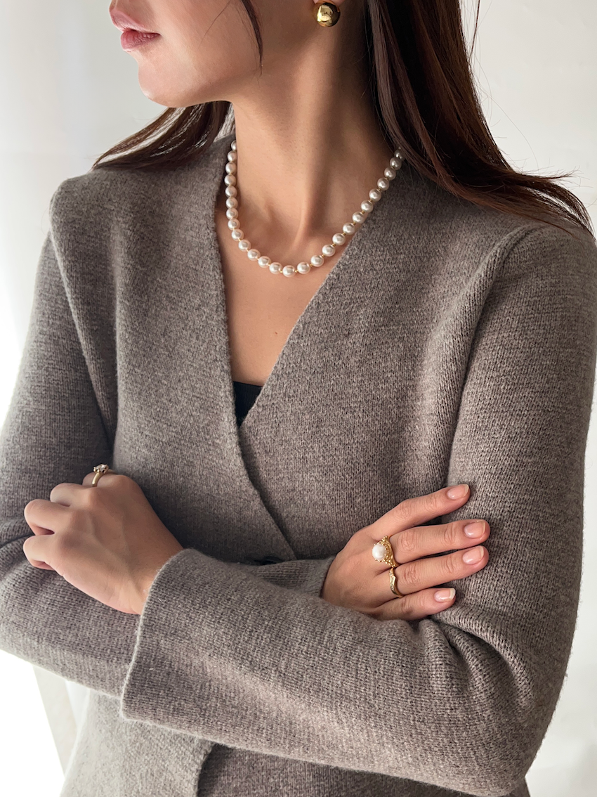 진주목걸이를 착용했을때 어느정도 무게감이 있어야 부드러운 옷감과 잘 스타일링되고