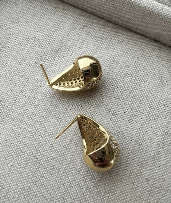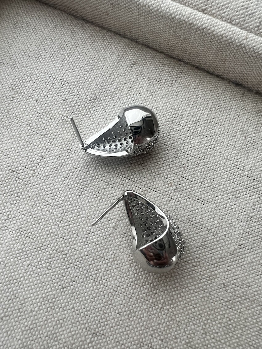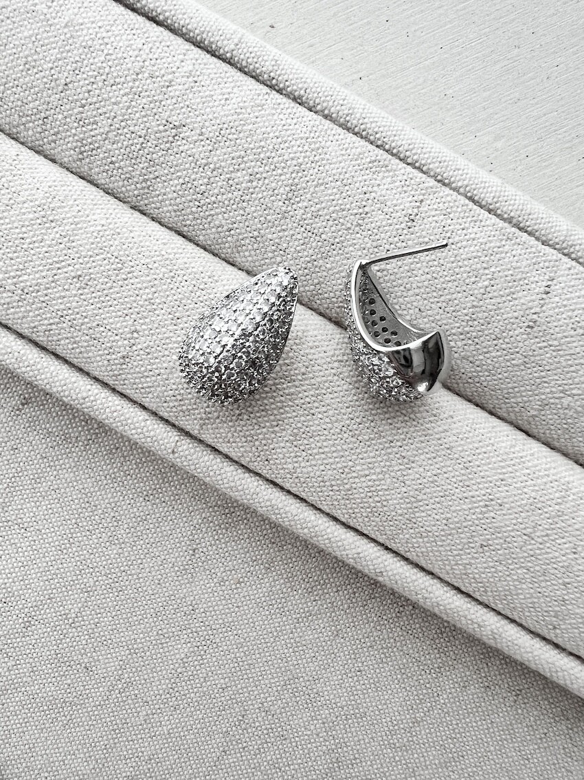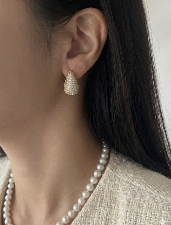 전체적으로 티어드랍의 모양을 유지하지만 착용했을때의 귓볼의 위치와 이어링의 자연스러운 착용을 위해 안쪽으로 깊이 파여져있습니다..