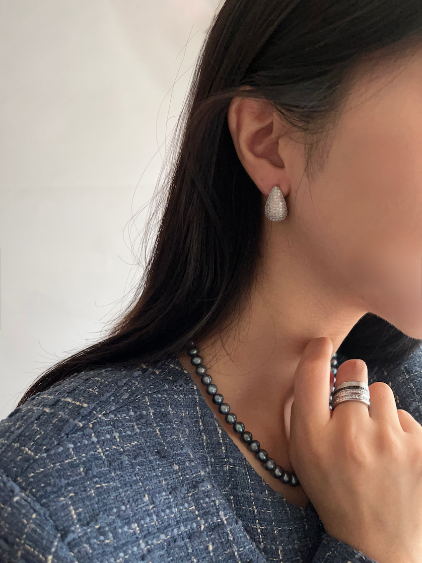 무엇보다 진주가 주는 단정하고 우아한 느낌에서 조금 살짝 포인트를 어떻게 주느냐에 따라 완전히 격이 다른 스타일링으로 다시 태어날 수 있기 때문에 저희는 이런 매칭 아이템을 많이 고민합니다.