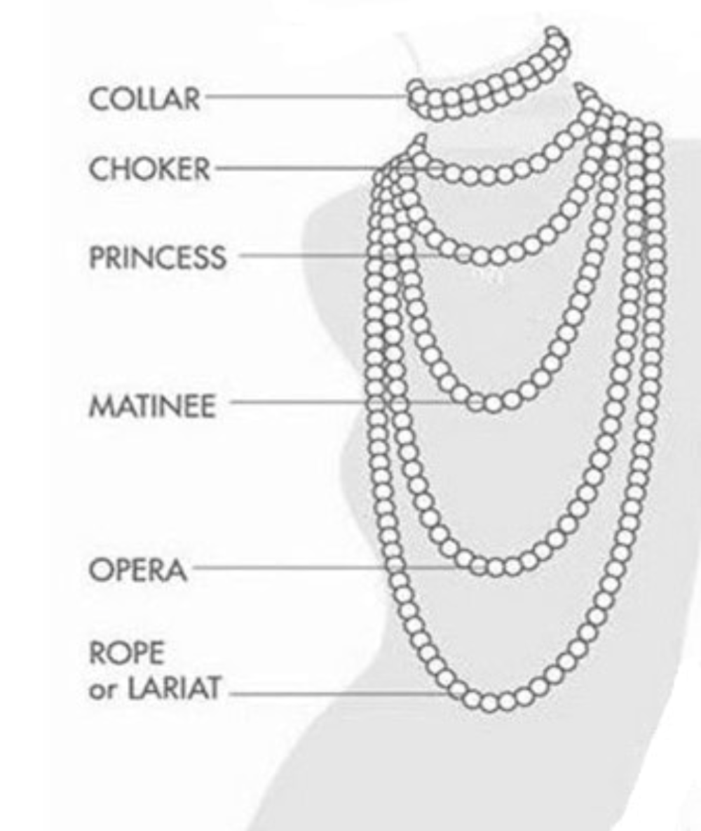 진주 목걸이의 길이는 그 길이에 따라 불리우는 이름이 있습니다.