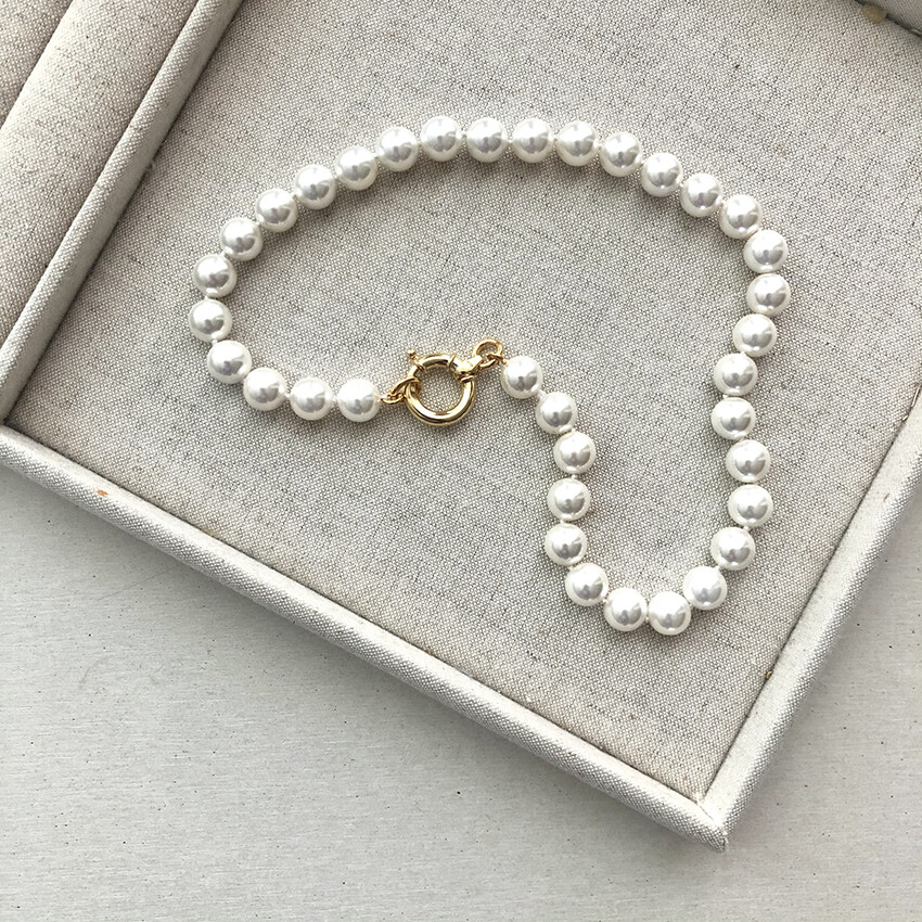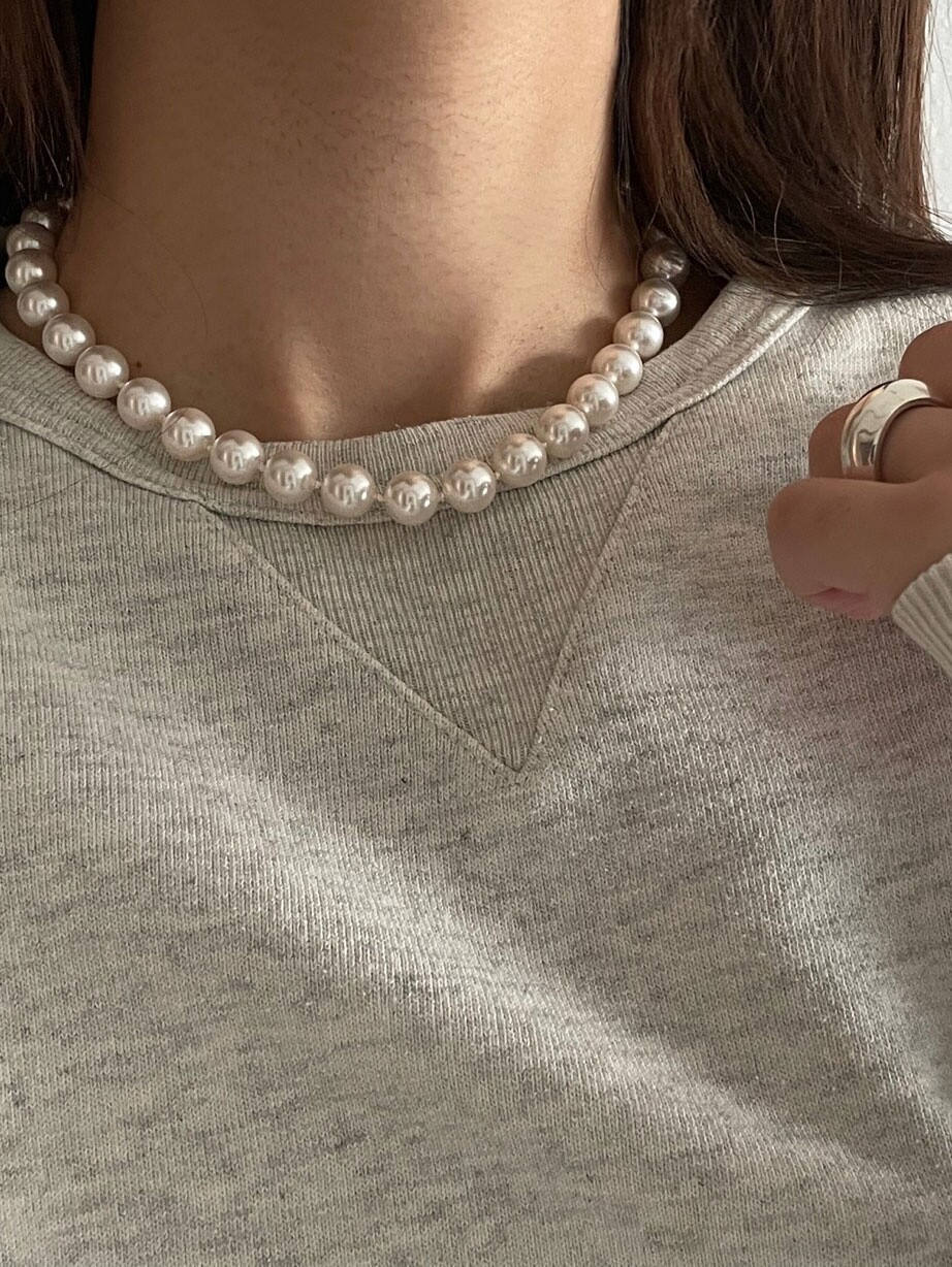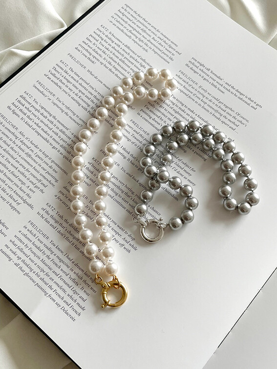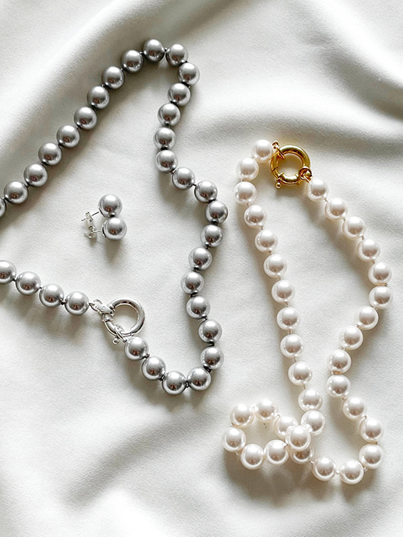 가장 보편적인 진주비딩목걸이의 진주사이즈 10mm를 기본으로 하여 볼드하면서도 현대적인 느낌을 풍부하게 살려주었습니다.
