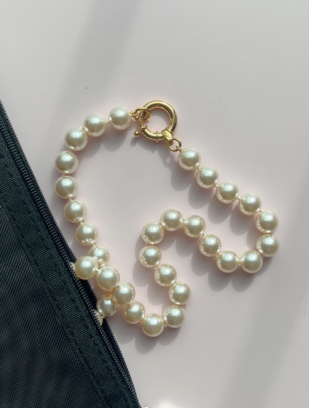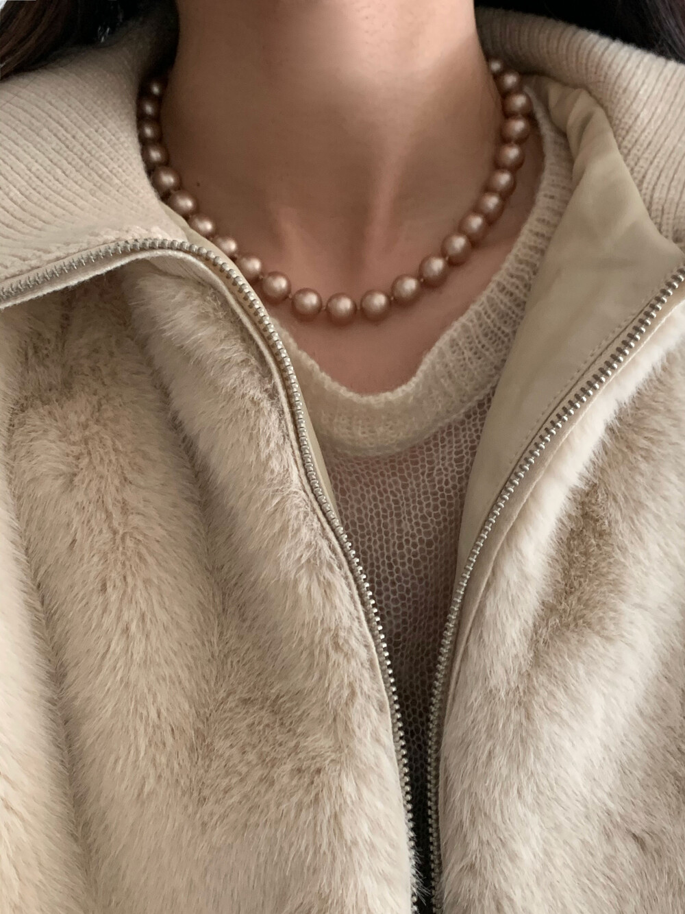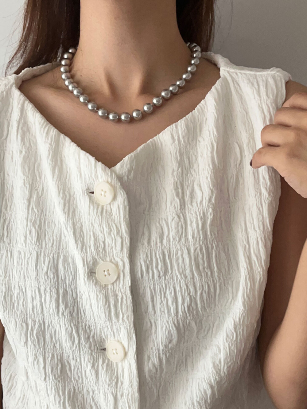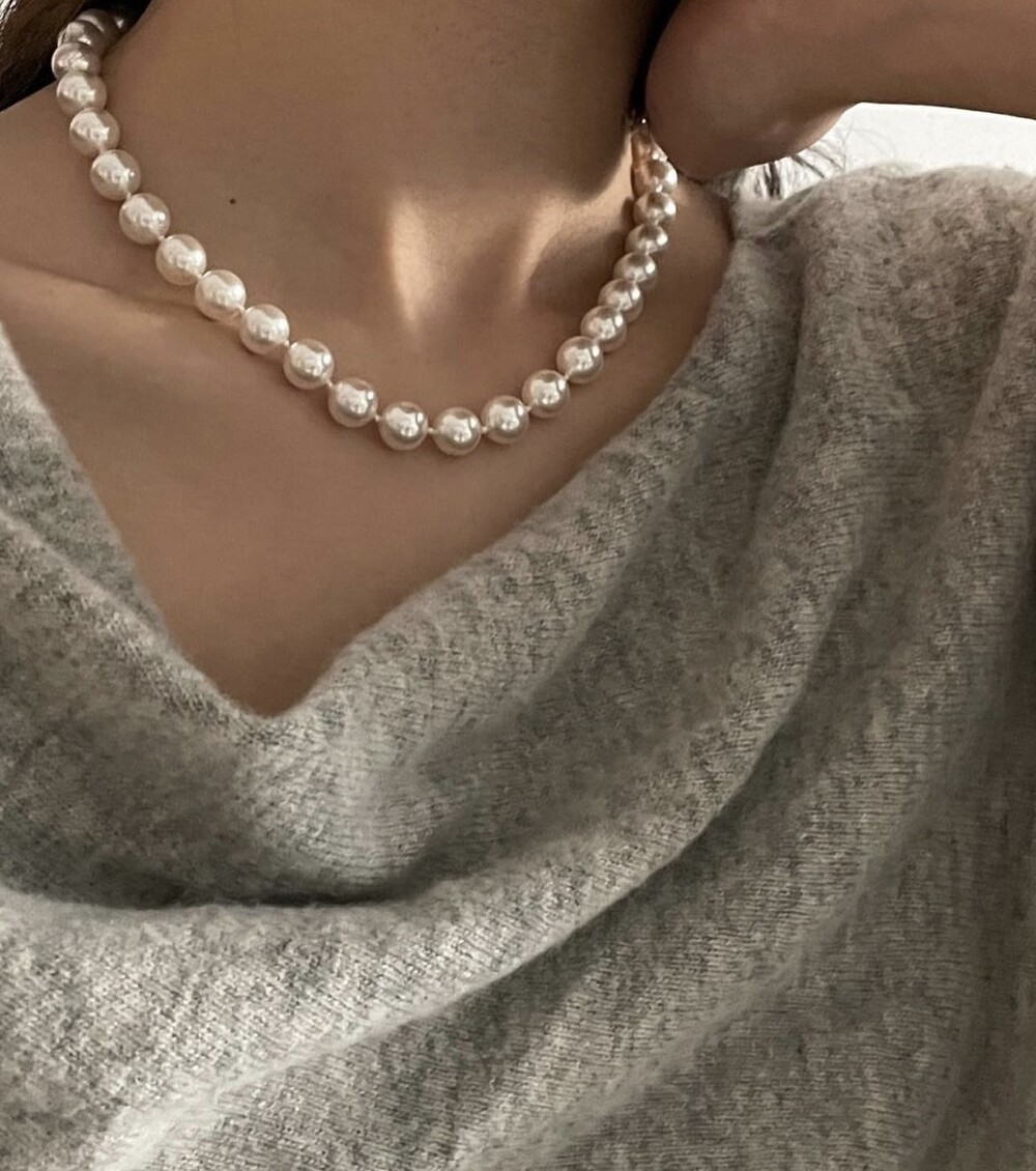 진주목걸이를 착용했을때 어느정도 무게감이 있어야 부드러운 옷감과 잘 스타일링되고