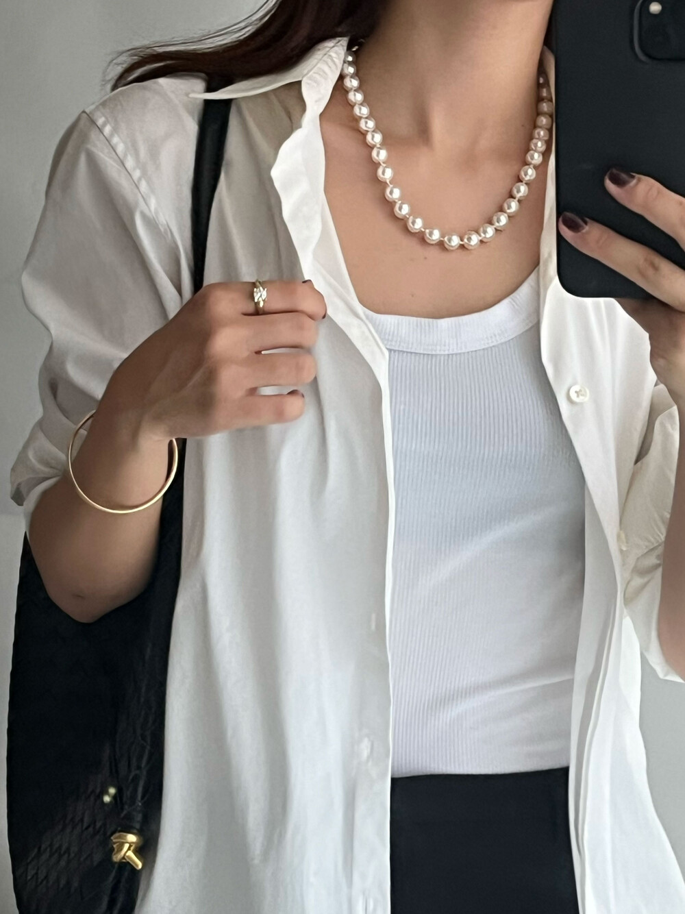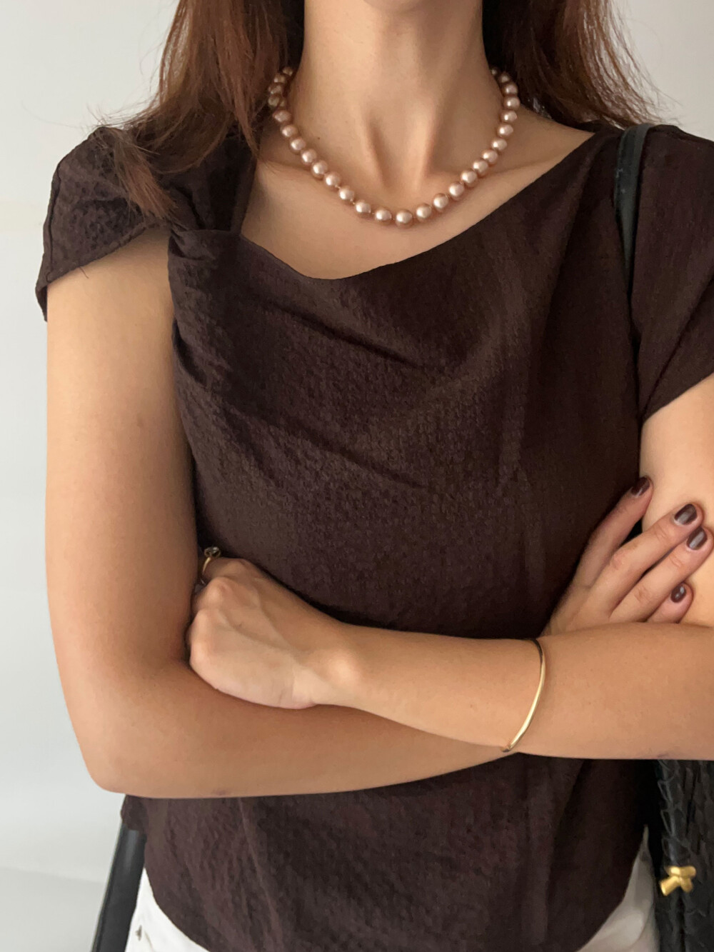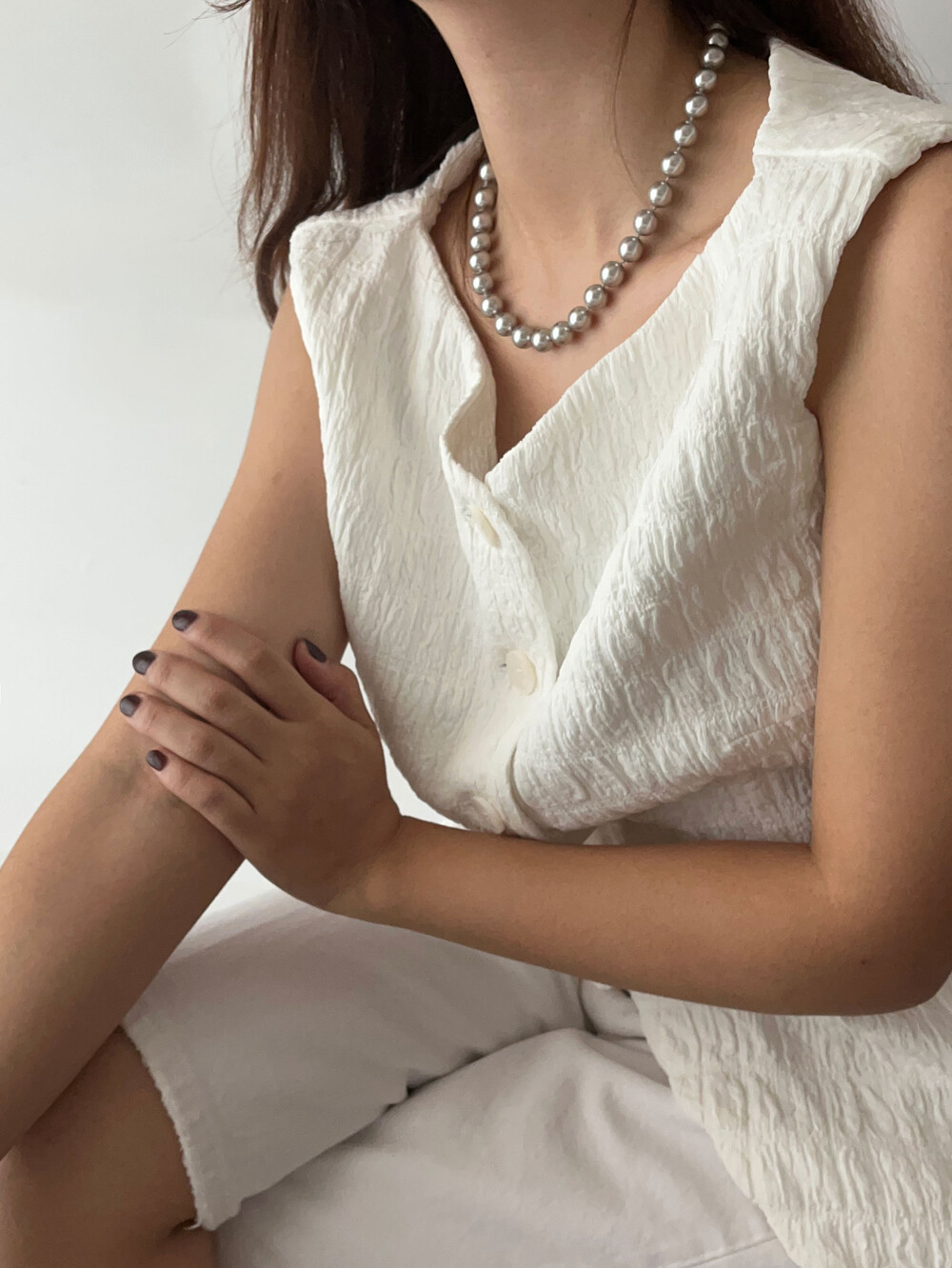 진주목걸이를 착용했을때 어느정도 무게감이 있어야 부드러운 옷감과 잘 스타일링되고