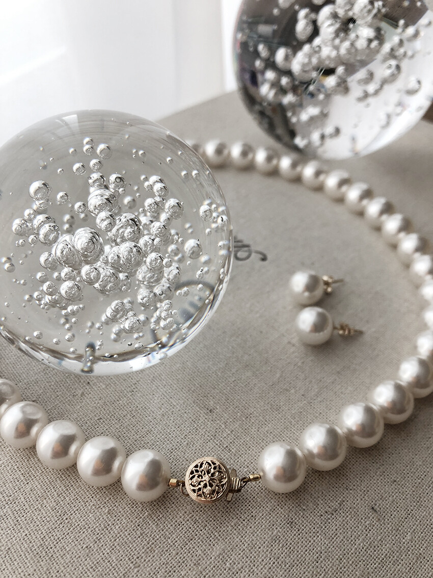 심플한 진주목걸이에도 진주의 종류, 크기 그리고 비딩