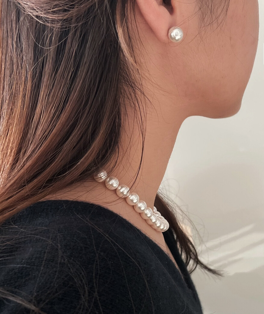 심플한 진주 스터드 귀걸이 하나로 완전히 다른 룩으로 !!