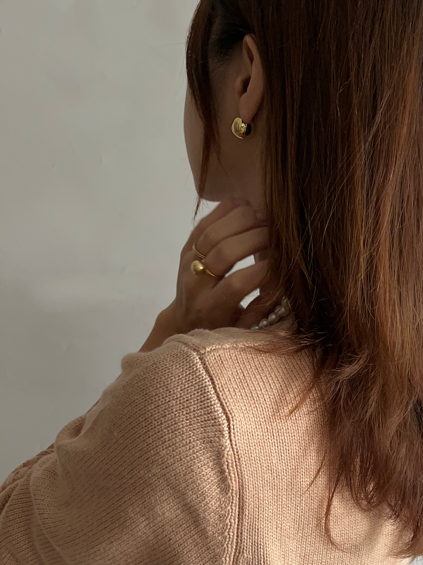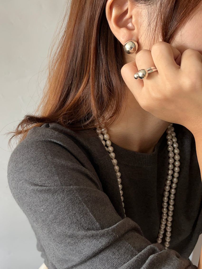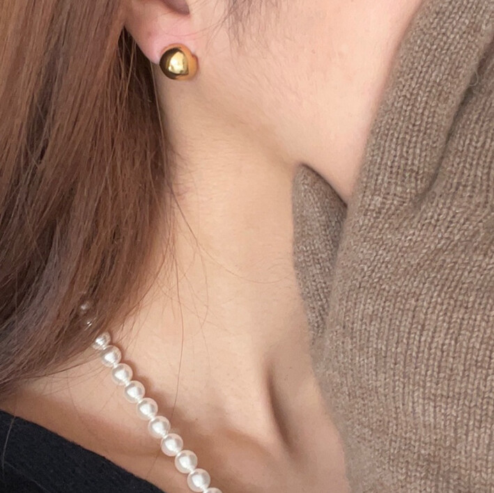 완전한 볼 형태의 원터치 귀걸이로 착용시 귓볼을 자연스럽게 덮으면서 안정적인 구조를 보여주는 귀걸이입니다.