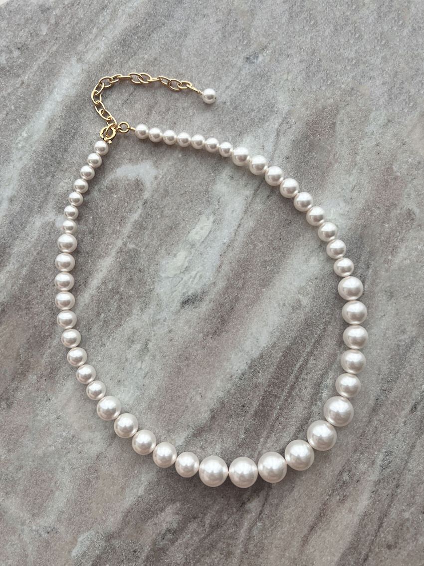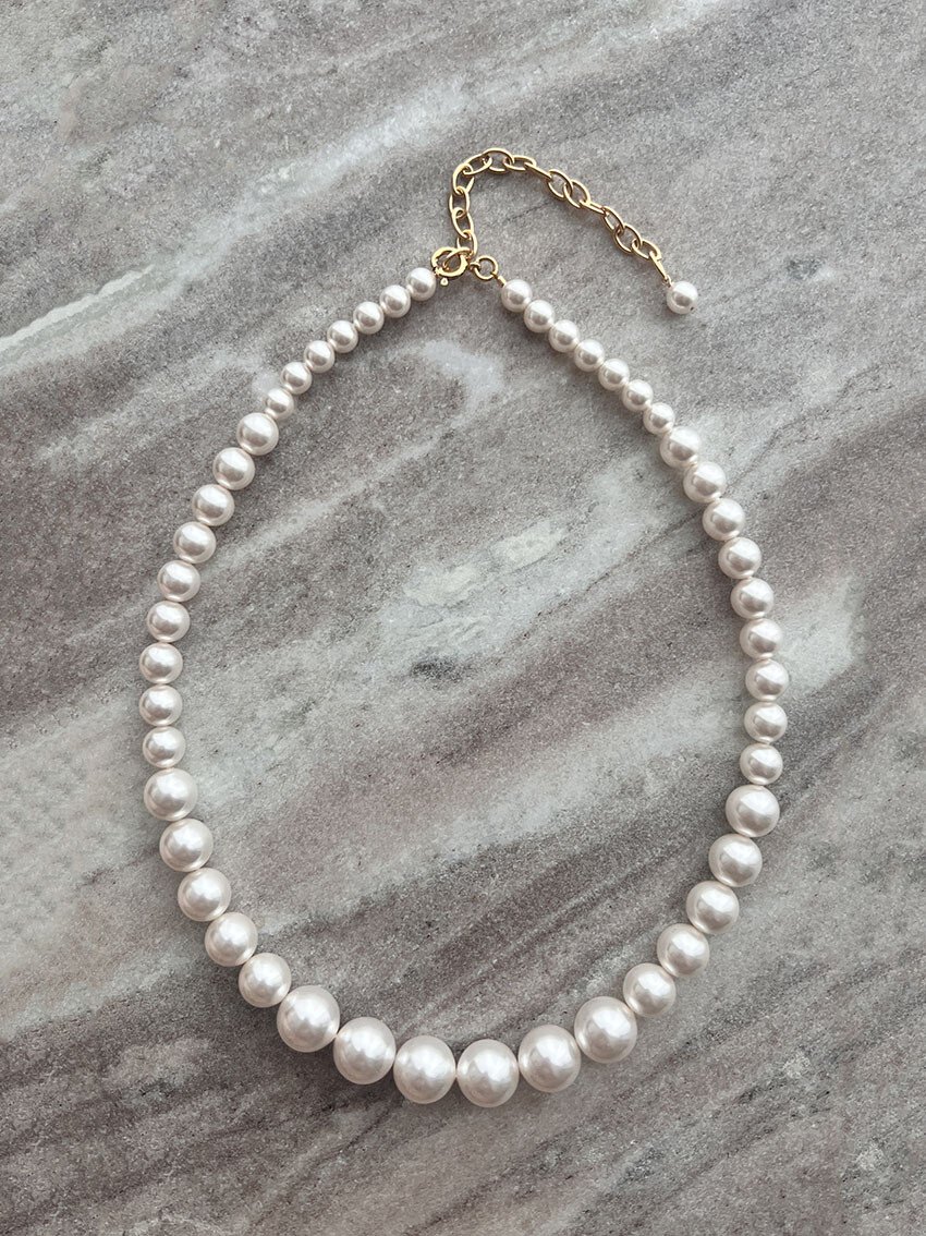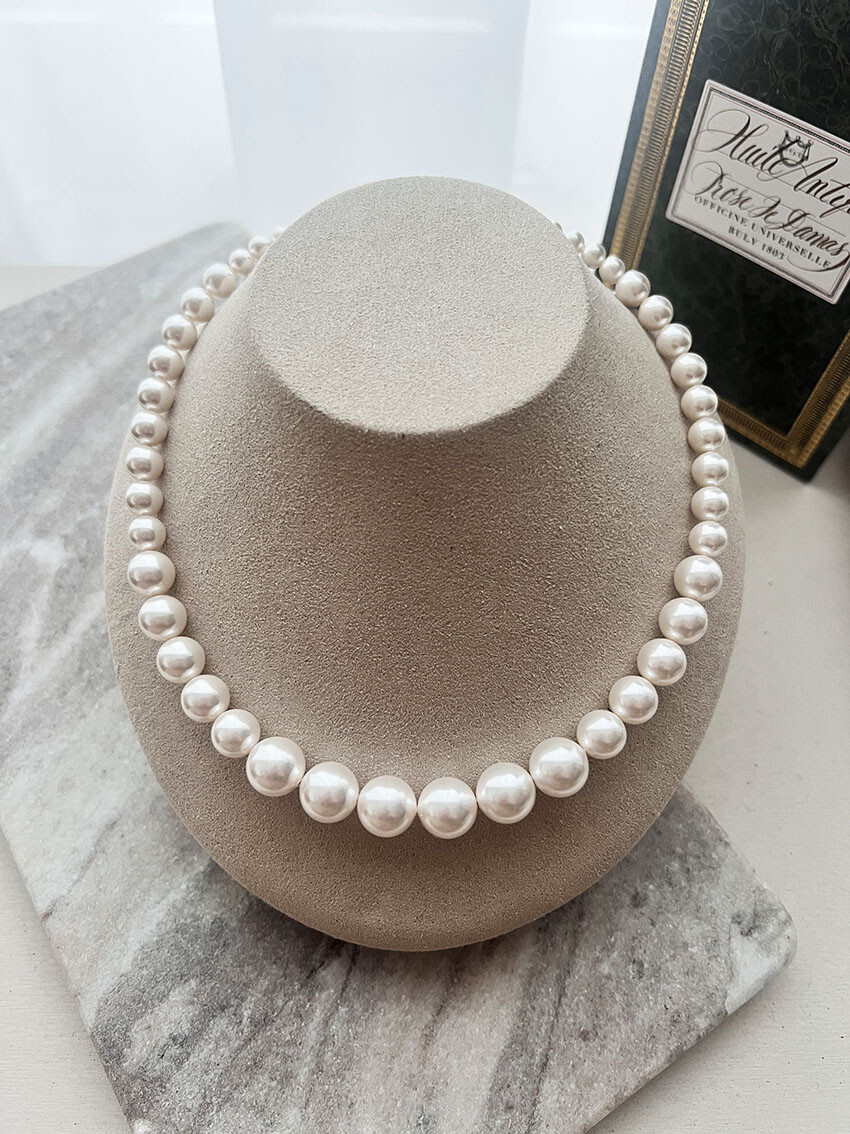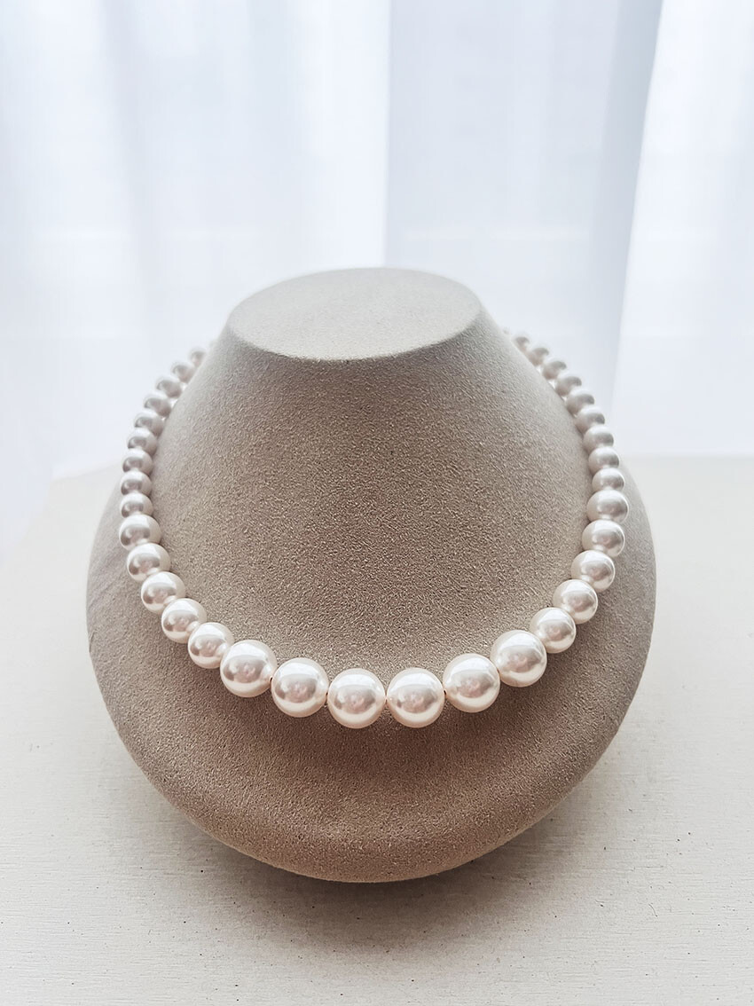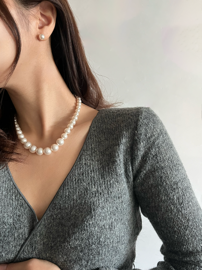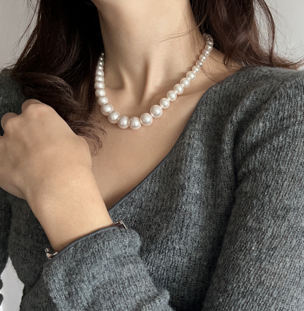 일반적으로 우리가 이야기 하는 기본적인 '진주목걸이'는 8-10mm 정도의 전형적인 사이즈로 처음부터 끝까지 같은 크기로