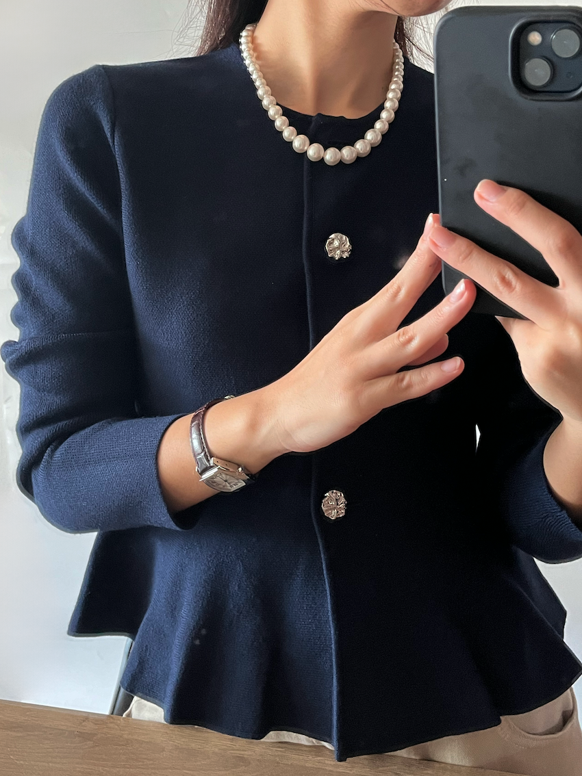 사실 이 목걸이에는 일반적인 골드/실버류들 모두 잘 어울릴 수 있지만 특별한 진주의 컬러를 함께 매칭한 원포인트 이어링도 같이 한다면 더욱 잘 차려입은 포멀한 느낌으로 자리할 수 있게 되리라 생각합니다.