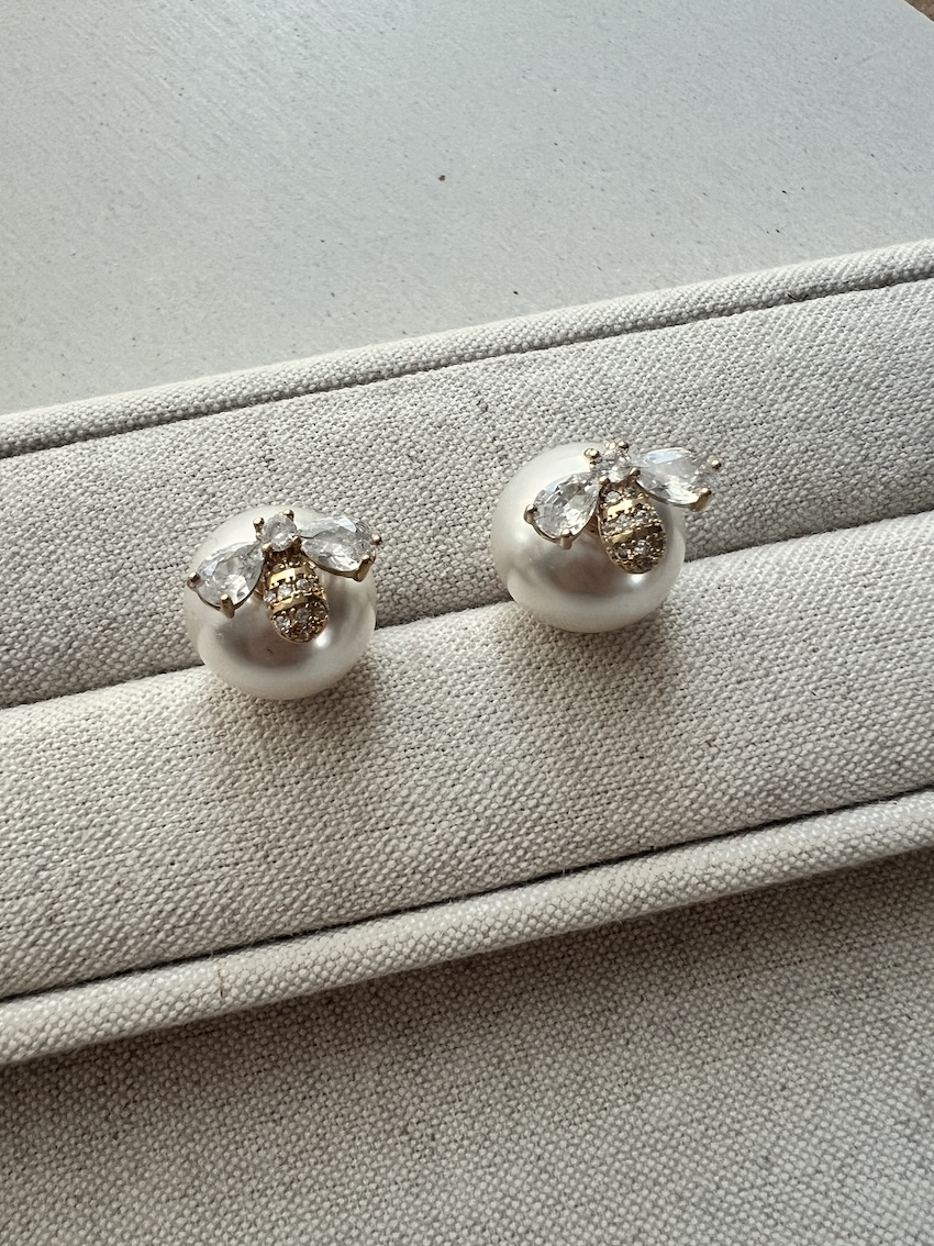 Honeybee Pearl Clutch Earrings