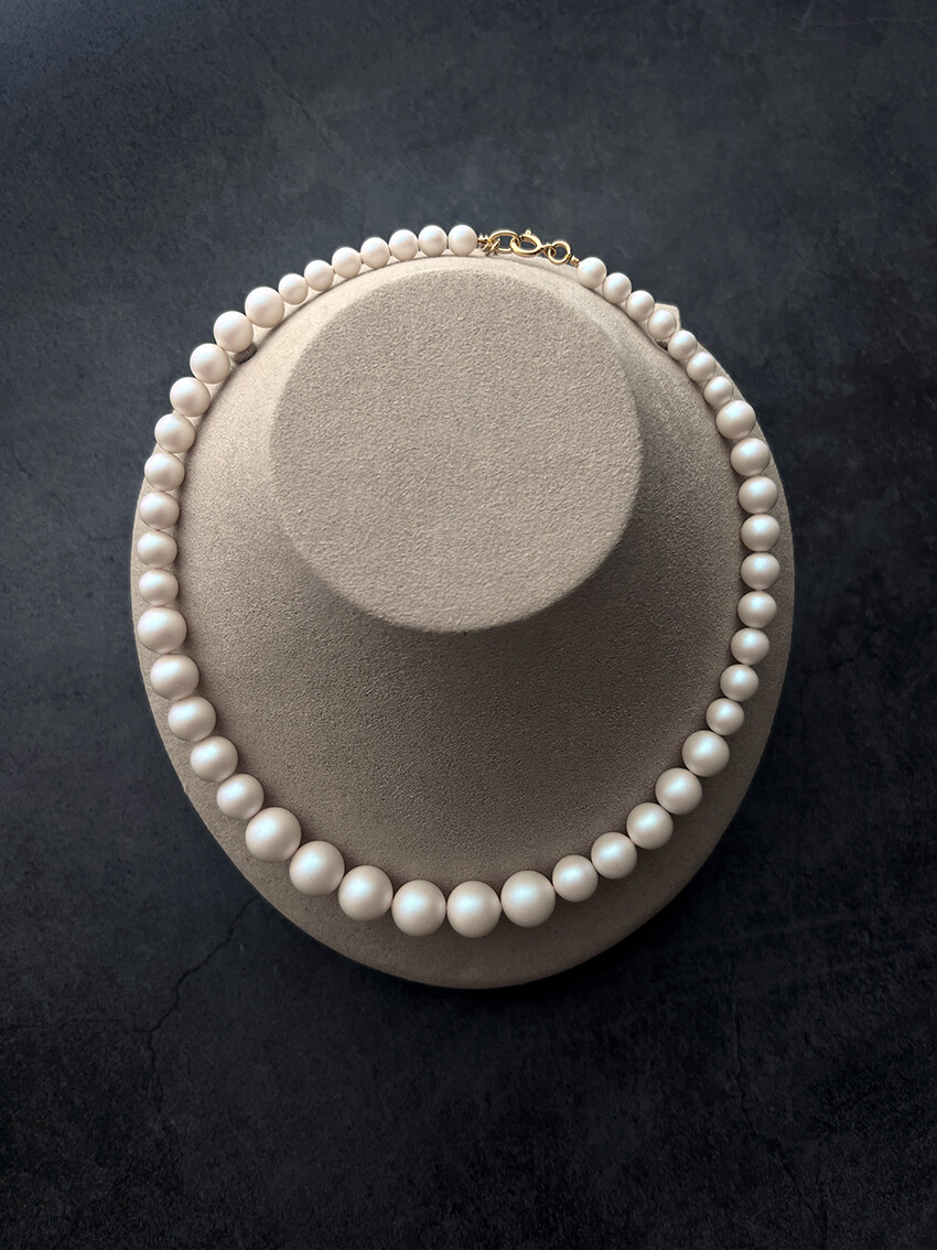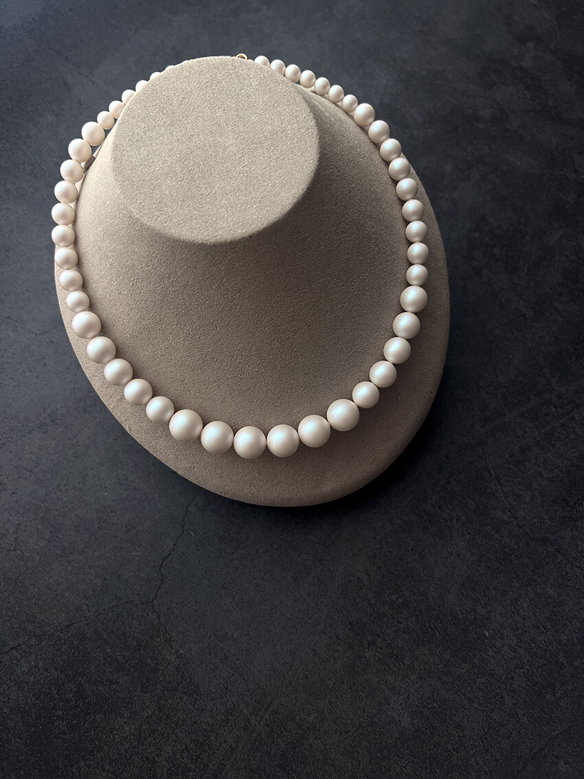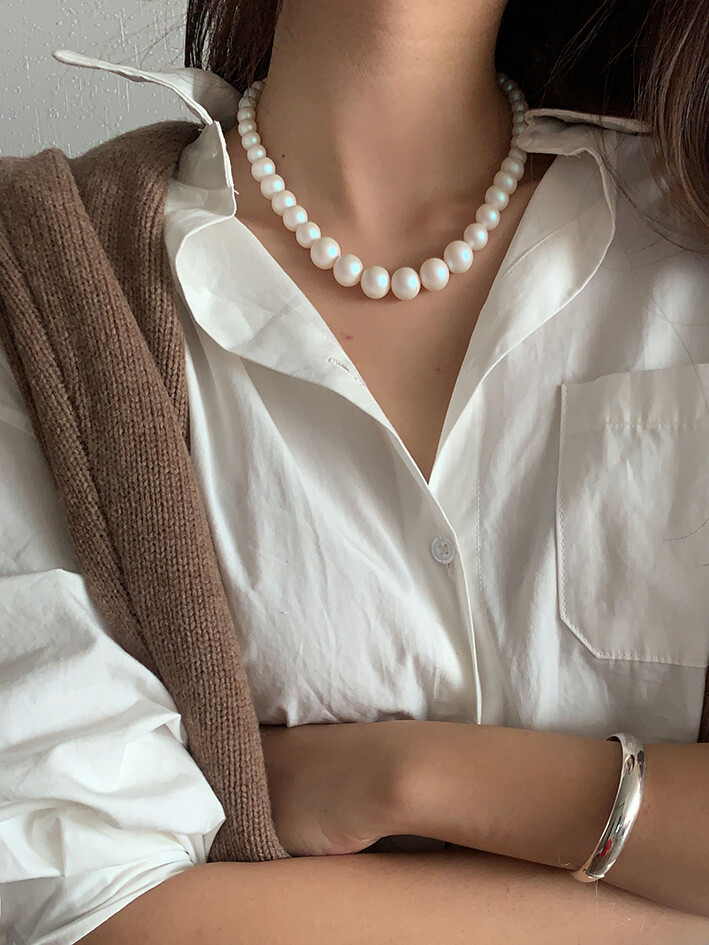 일반적으로 우리가 이야기 하는 기본적인 '진주목걸이'는 8-10mm 정도의 전형적인 사이즈로 처음부터 끝까지 같은 크기로